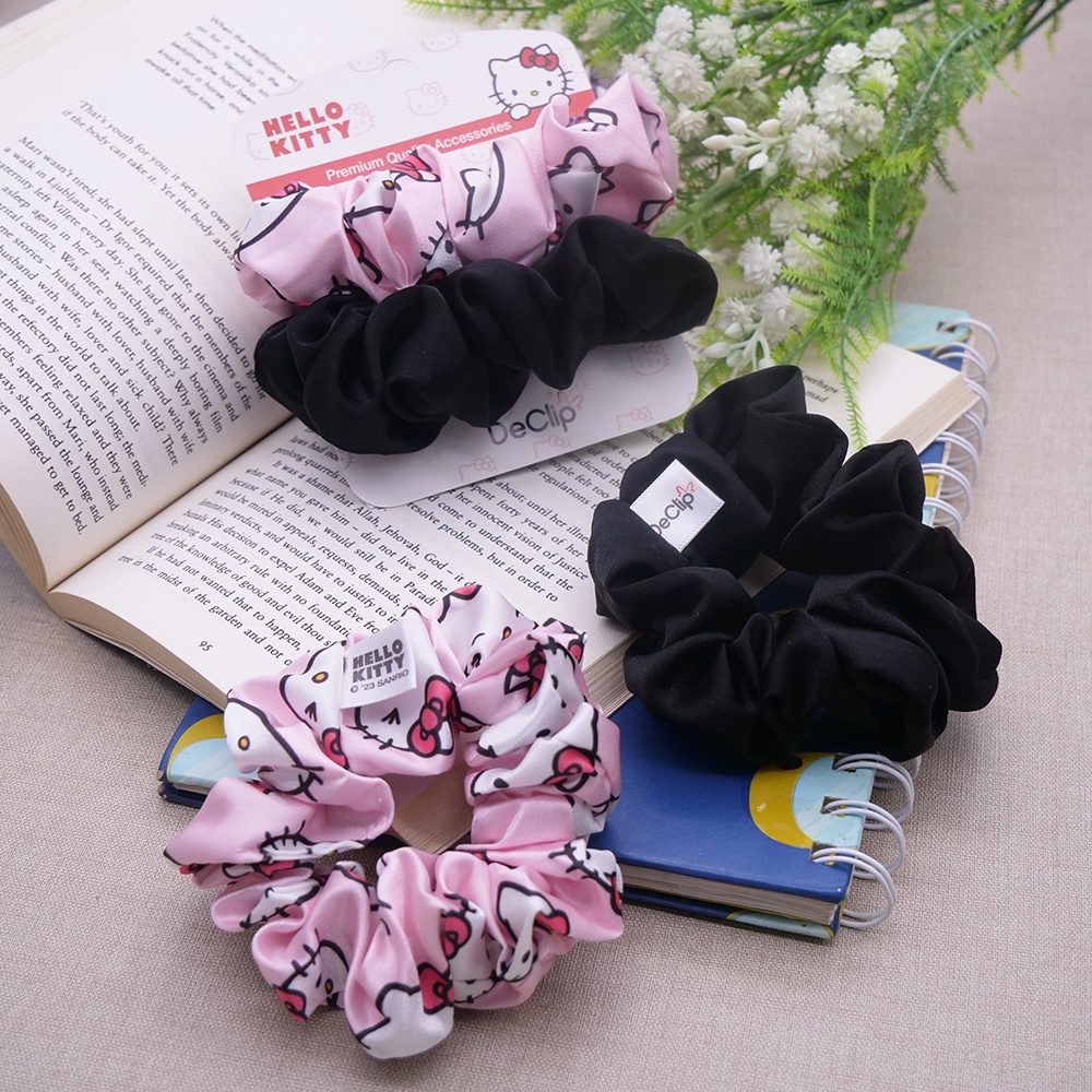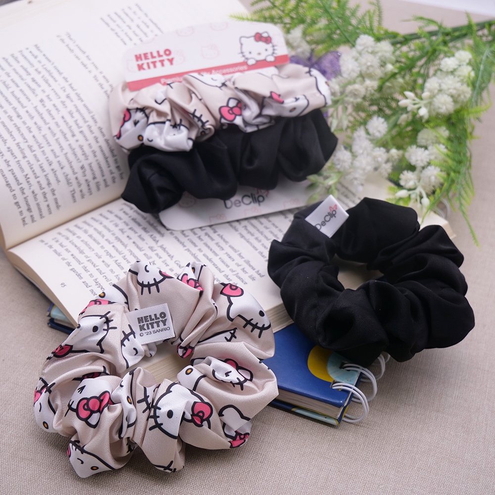 DeClip X Sanrio Scrunchie Satin Set Motif Hello Kitty Head