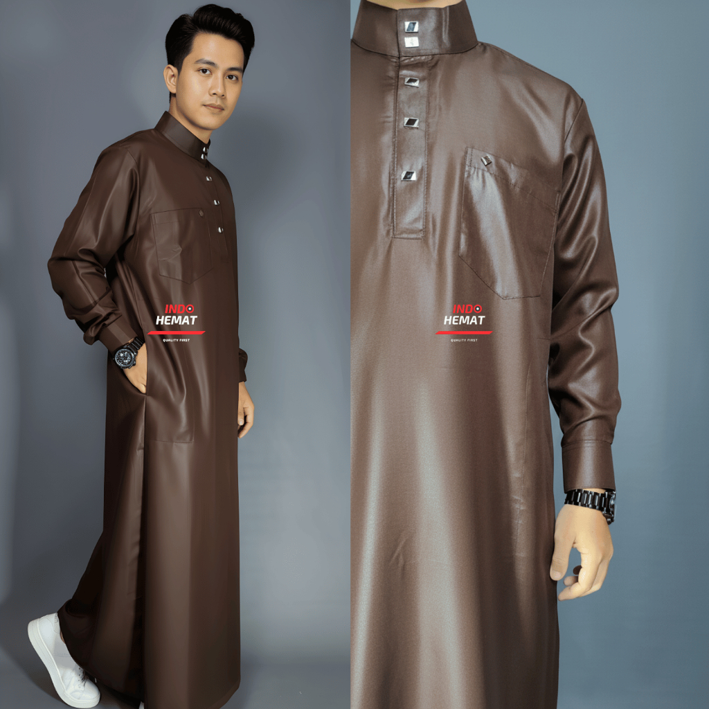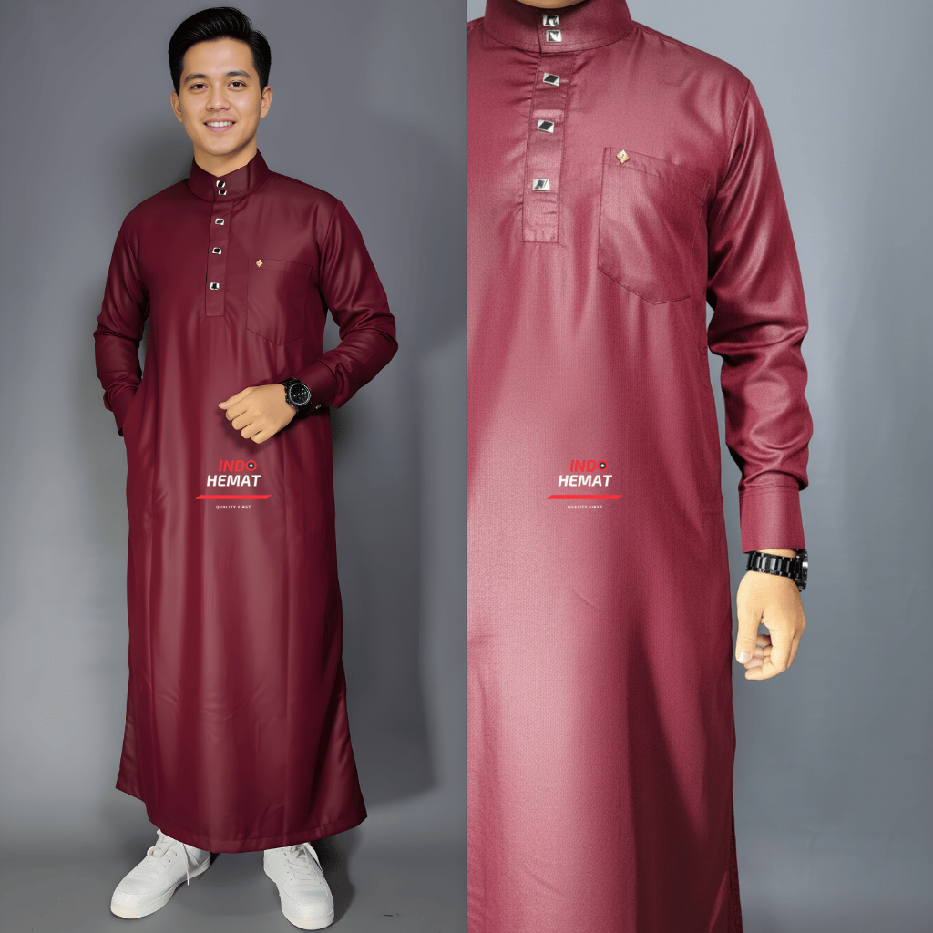 Jubah Gamis Pria Dewasa Harrmain Polos Lengan Panjang Manset Katun Premium