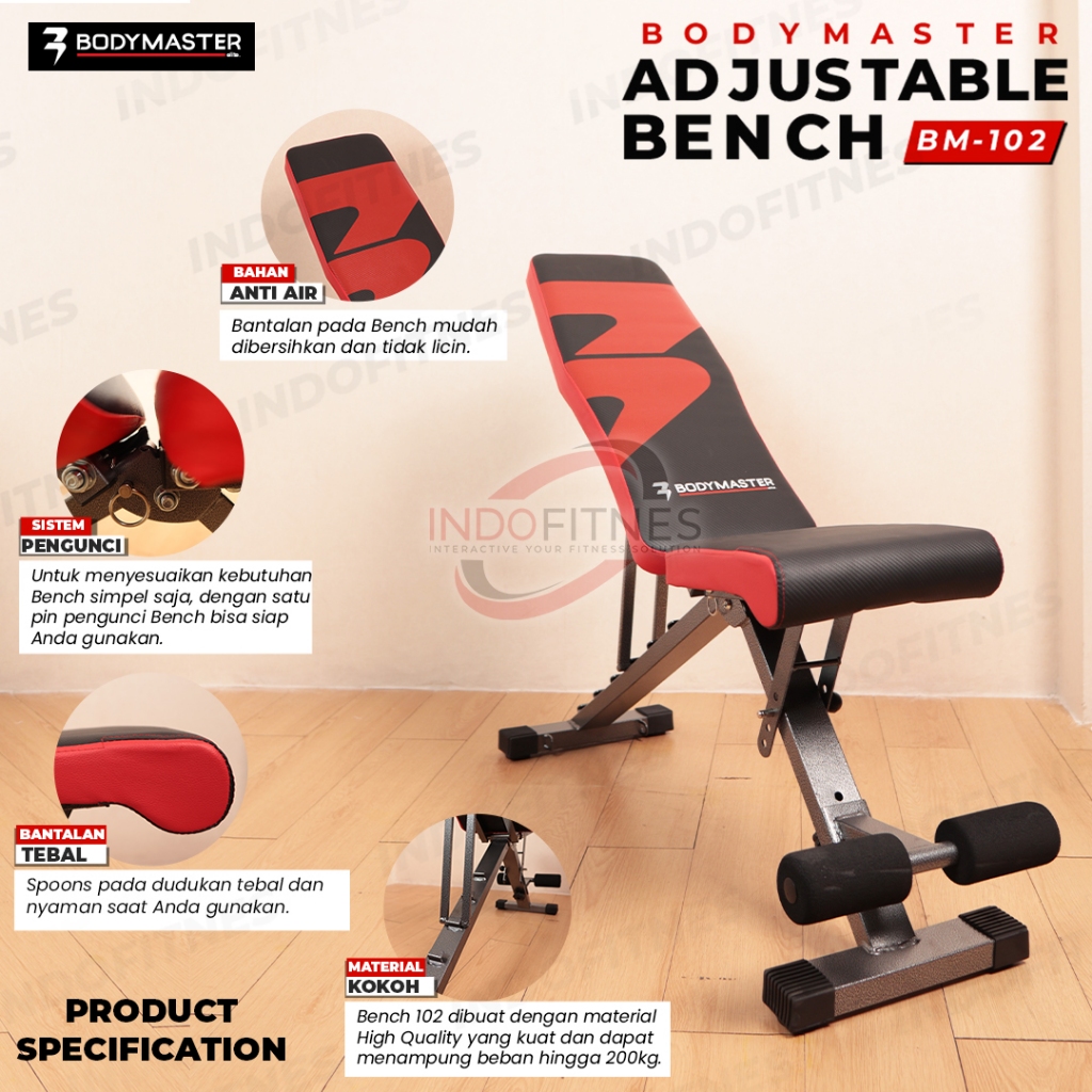 Bodymaster Adjustable Bench Bm-102 Bangku Gym Fitnes Sit Up Dumbell
