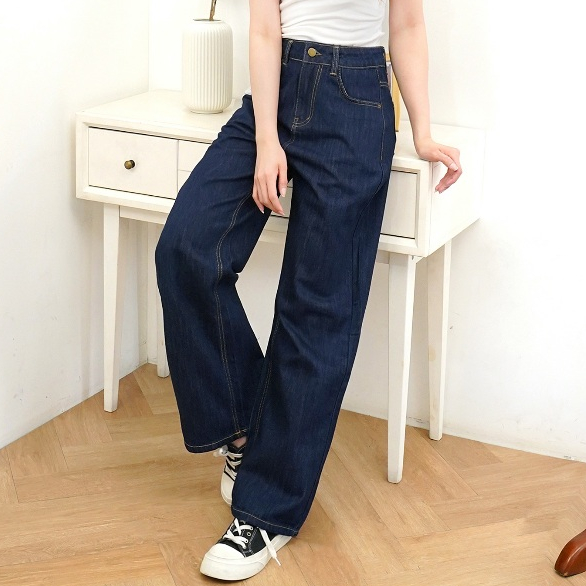 Straight Jeans Highwaist Wanita Denim Pants Casual pants Dark Blue - LamieRe 203
