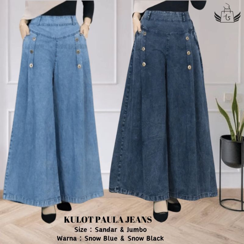 Celana Kulot Paula Jumbo Snow Palazzo/Kulot Payung Jeans Wanita