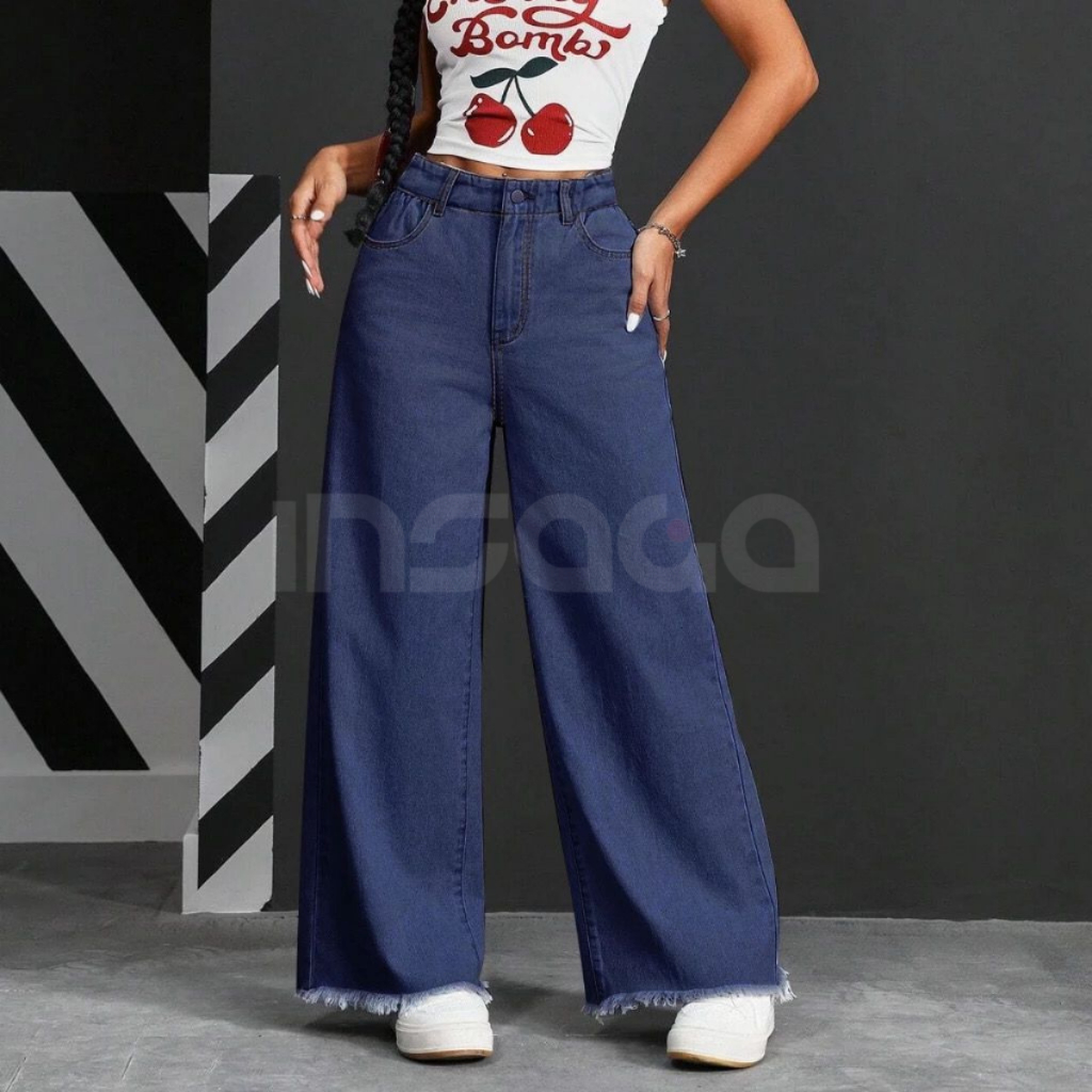 INSAGA Palazzo Pants Rawis Wanita Dewasa Bahan Denim Premium Celana Kulot Boyfriend Cewek Bigsize Fit 100 Kg Pinggang Ka