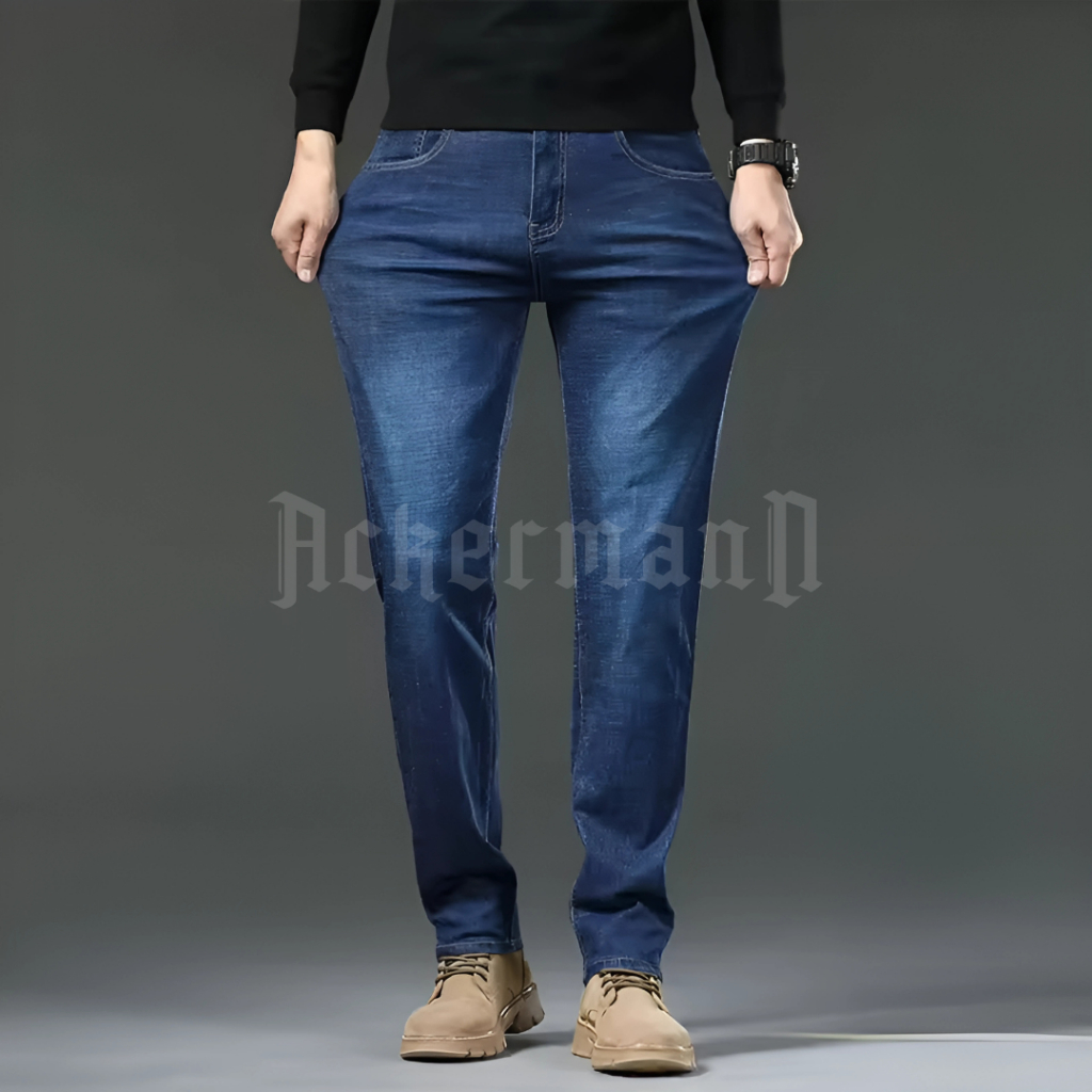 Ackermann - Celana Pria Jeans Retro Panjang Slimfit Dark Navy