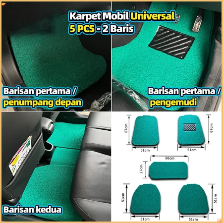 AOYING Karpet Mobil 5 Pcs 2 Baris Universal - Mie Bihun PVC - Ketebalan 16MM/ Universal bisa diaplikasikan ke semua mobi