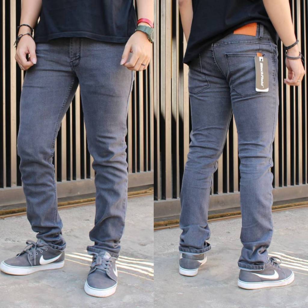 Blackfield Celana Jeans Denim Panjang Pria Slim Fit Skinny Cowok Strecth Melar Black Garmment