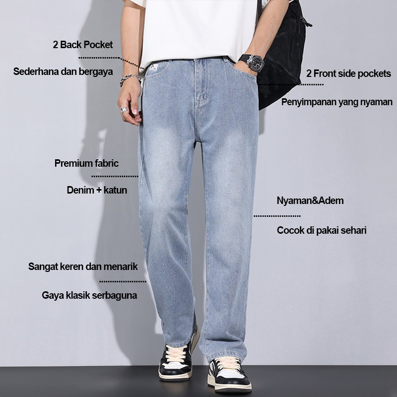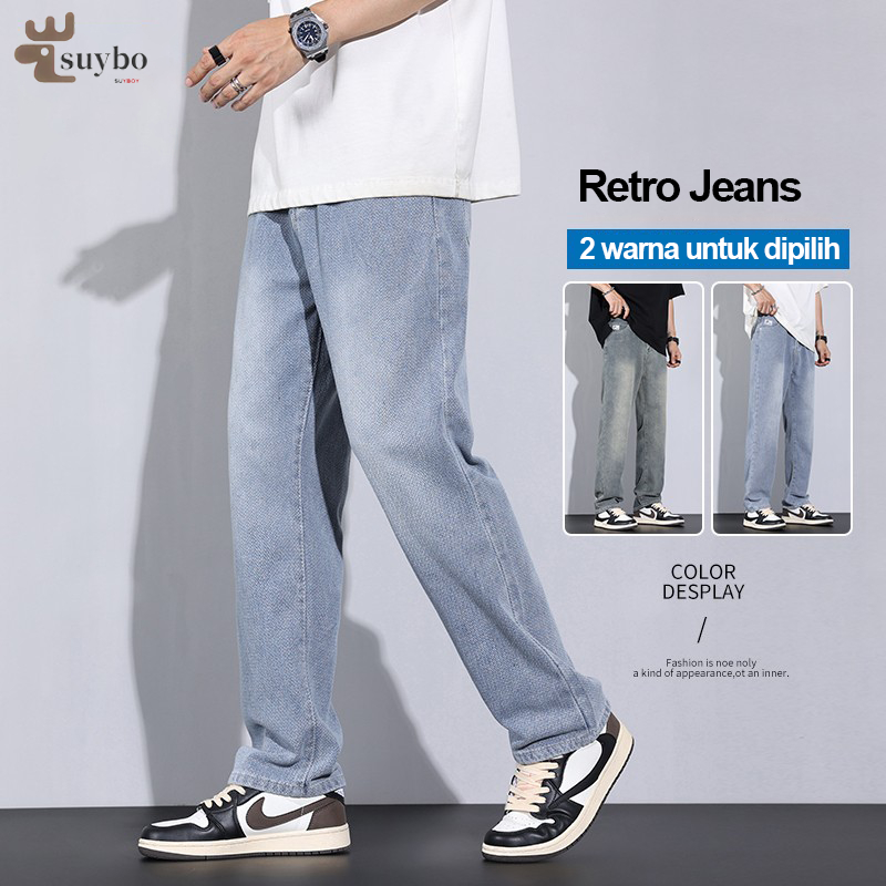 Suyboy Celana Jeans Pria Amerika Baggy Nyaman Retro Jeans Skena Kekinian Denim Baggy Jeans Pria