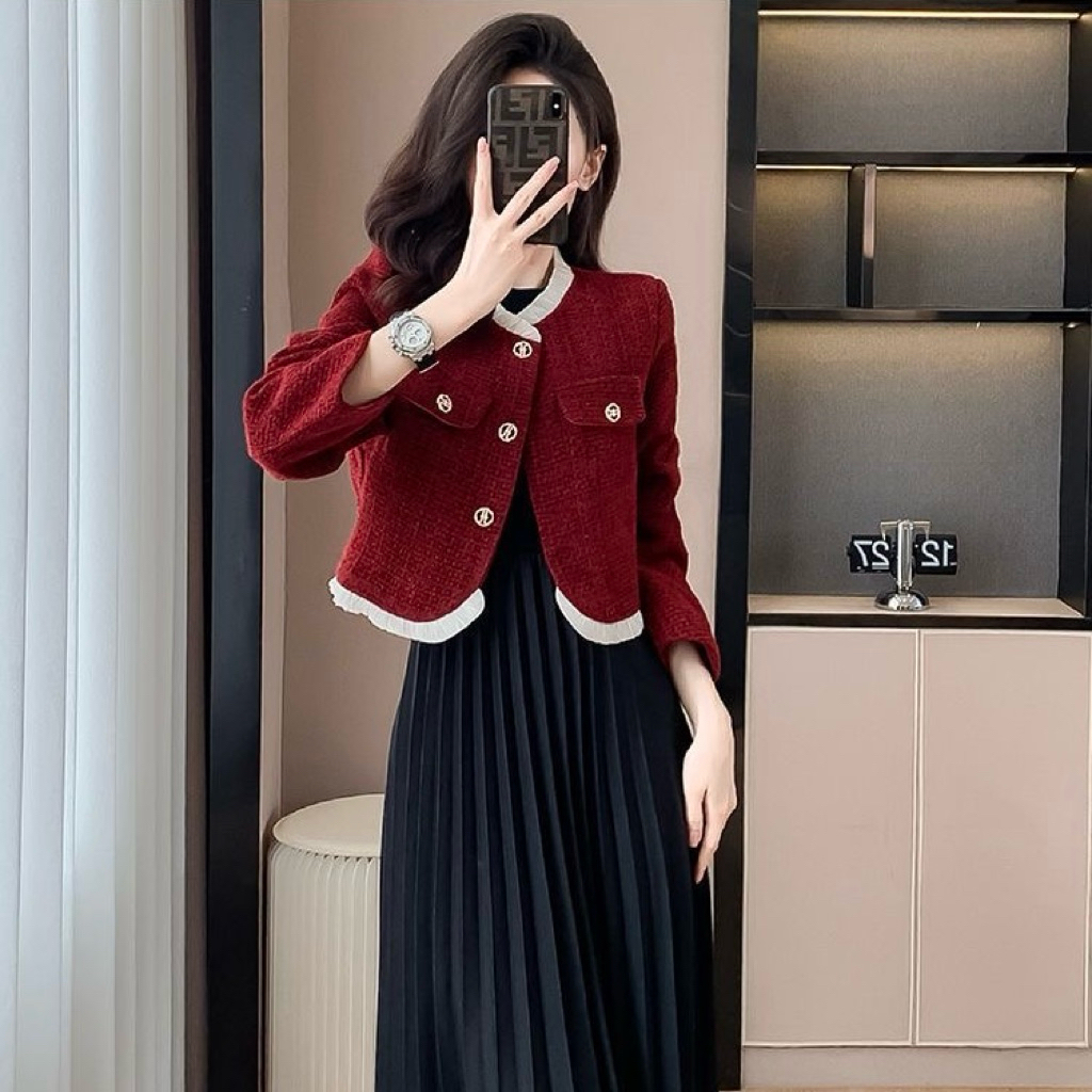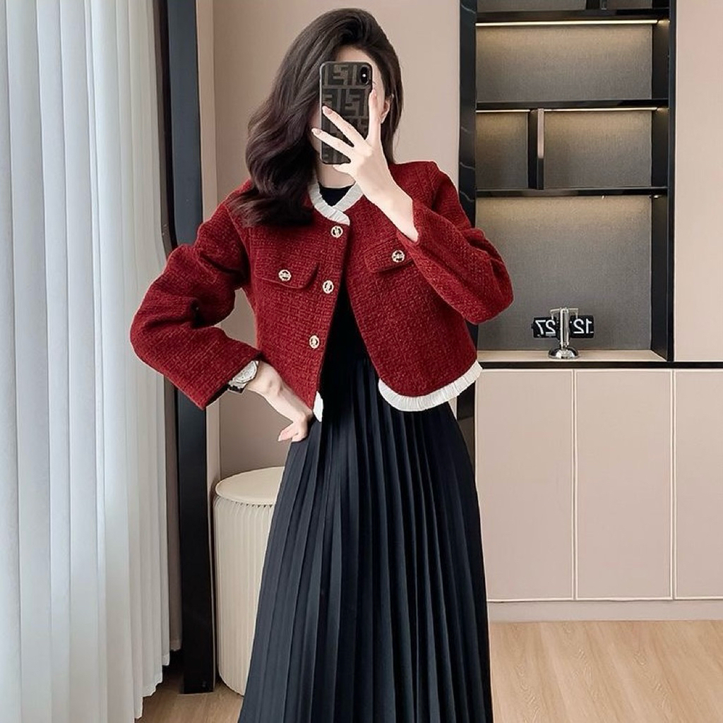 BT- #3538 Maroon & Black Tweed Crop Blazer with Ruffled Trim Blazer er Petite Girls M-L-XL