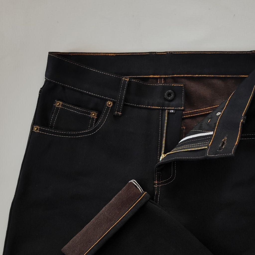 Tortuga Denim - Grizzly, Celana Jeans/Denim Deep Indigo X Brown Weft 14Oz Selvedge Accent, Raw Denim, Sanforized