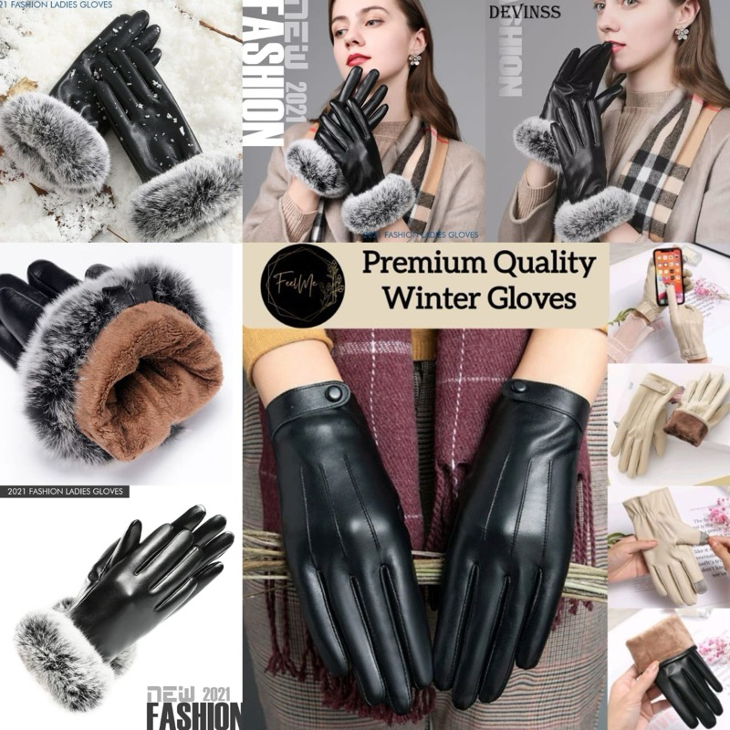 Feelme KK-349 (BLACK RESTOCK) Winter Leather Gloves, Sarung tangan Kulit touchscreen cocok untuk Musim dingin Winter Aut