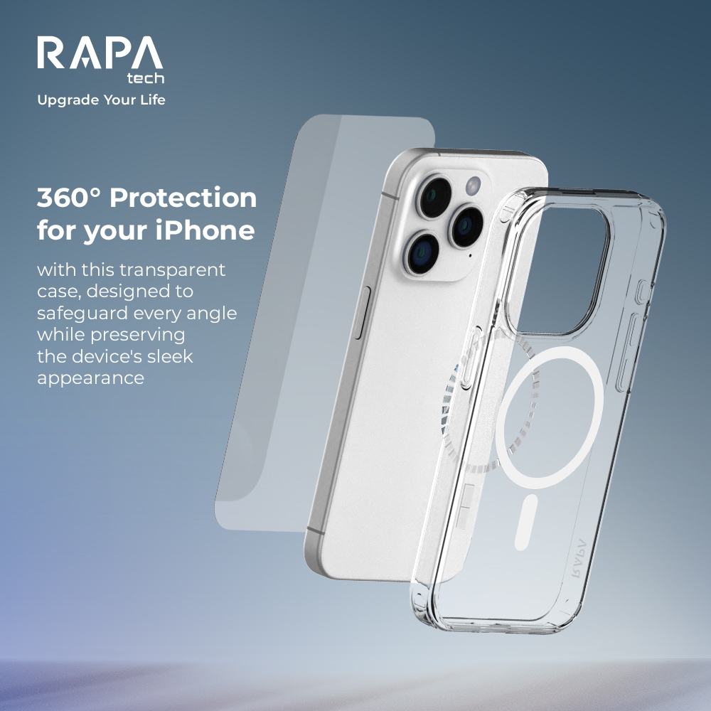 Buy 1 Get 3 - Rapatech Hybrid Case Magsafe Iphone 15 ( Clear/Matte ) 1Pcs Bonus Clear Case 1Pcs + 1 Pcs Tempered Glass C