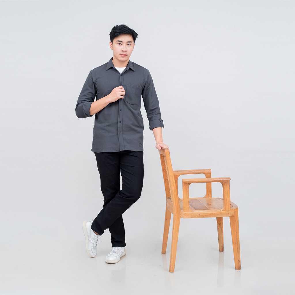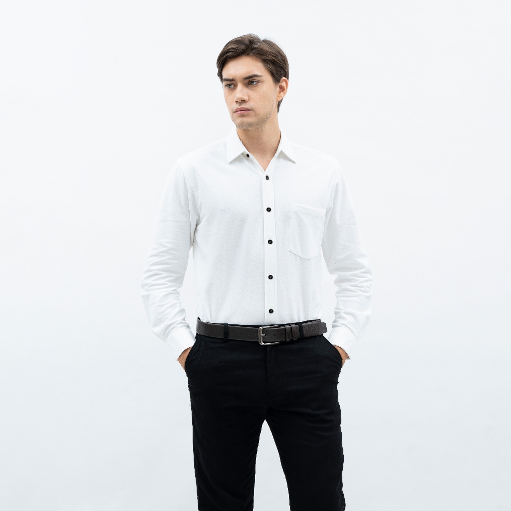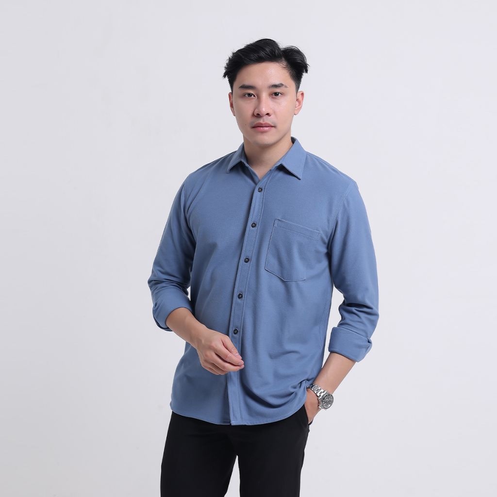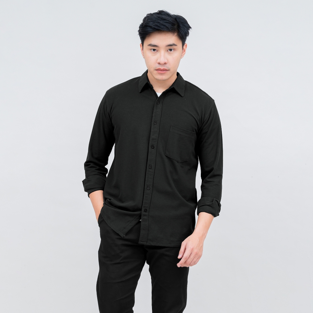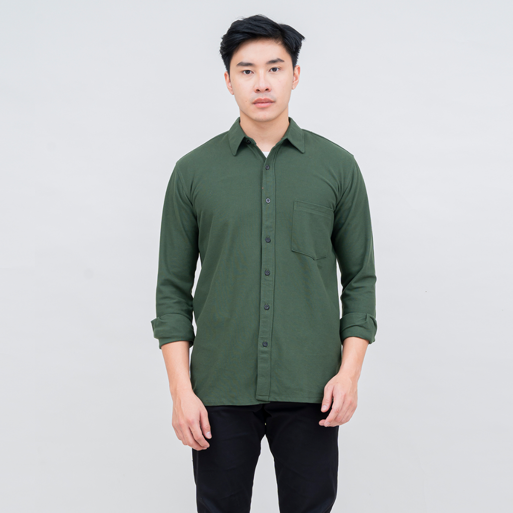 Kemeja Pria Polos Lengan Panjang DYD Pique Formal Kasual Otaco