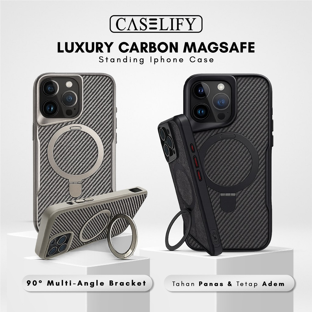 Caselify Luxury Magsafe Standing Carbon Bonus Free Lens Protector Compatible With Iphone Case 11 12 13 14 15 16 Pro Plus