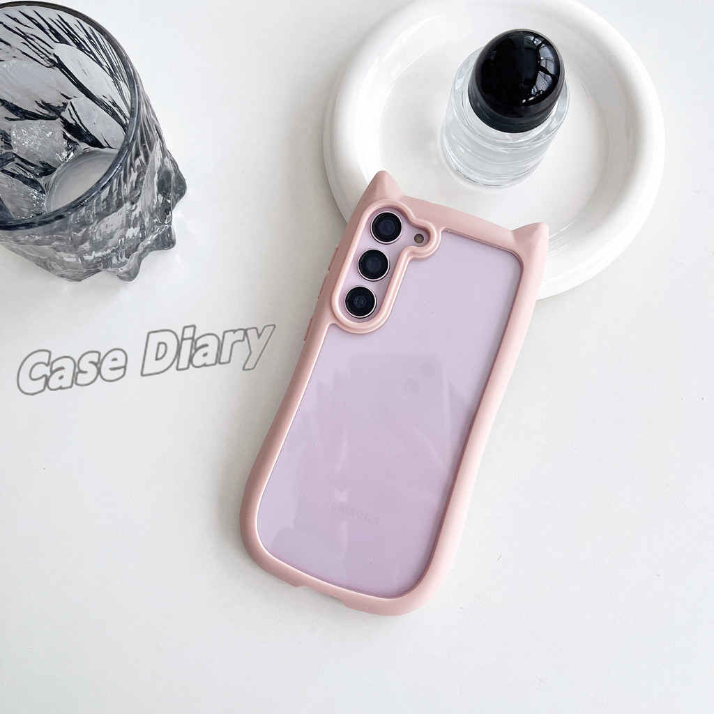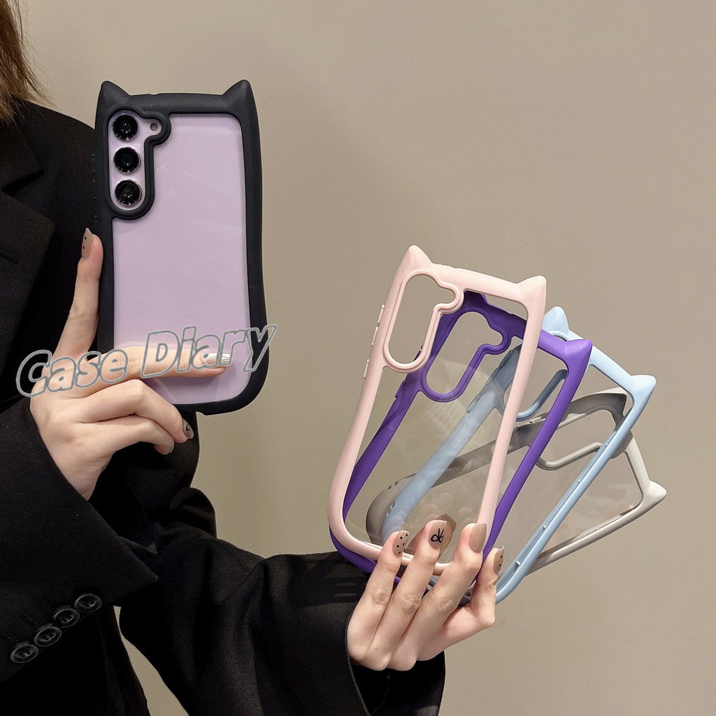 New Cute Cat Ear Shaped Minimalist Phone Casing Suitable For Samsung Galaxy S23 S24 S25 Plus Stylish Transparent Soft Ed