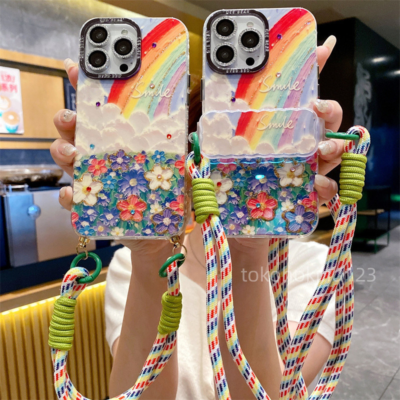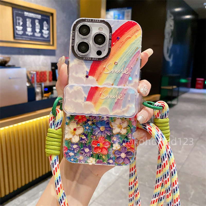Rainbow Colorful Flower Sea With Lens Film Crossbody Phone Case For Iphone 16 15 14 13 12 11 Pro Max 16Plus 15Plus 14Plu