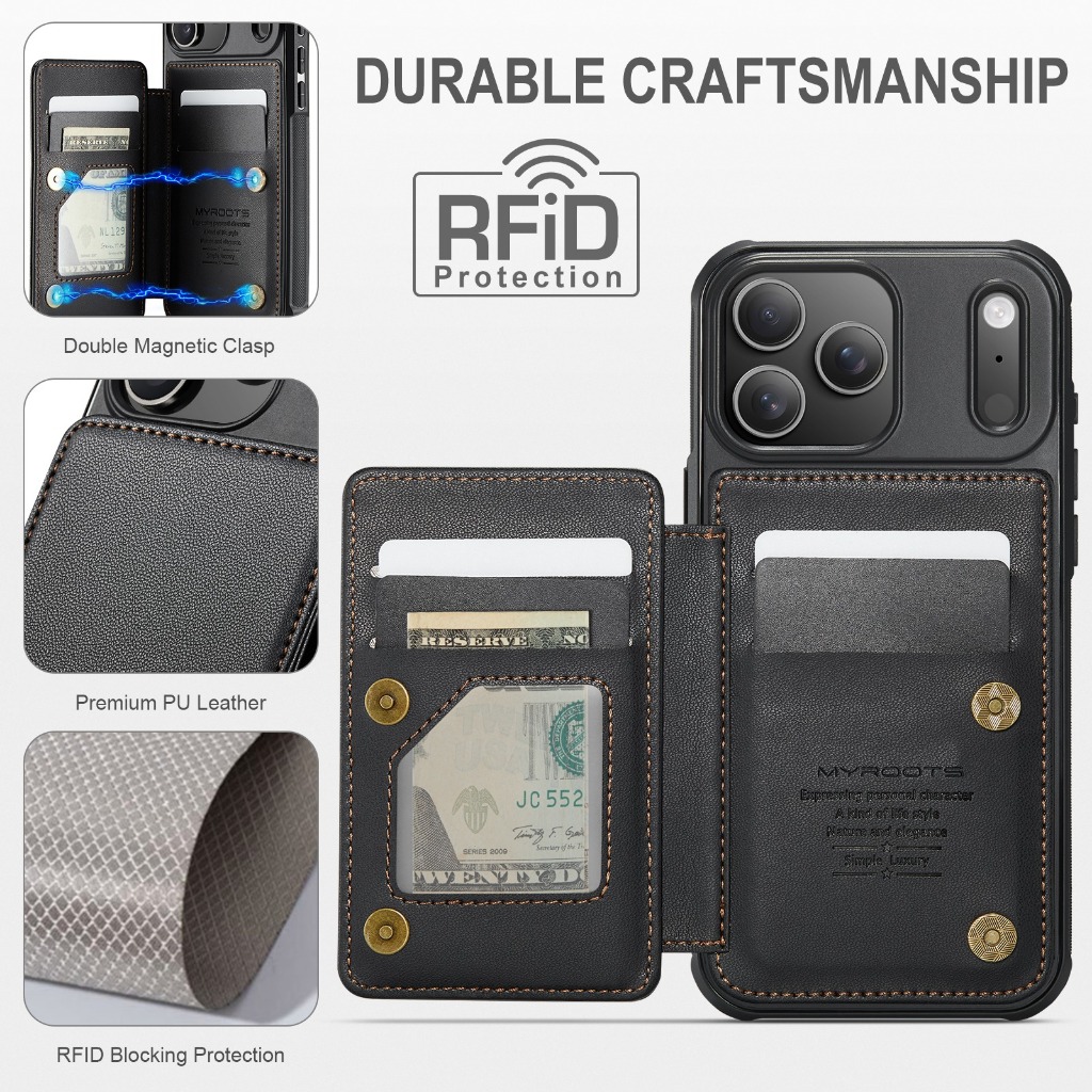 Myroots Grand Leather Case Untuk Iphone 17 16 15 14 13 Pro Max Series Casing Dompet Eksklusif Wallet Mrc22 Rfid