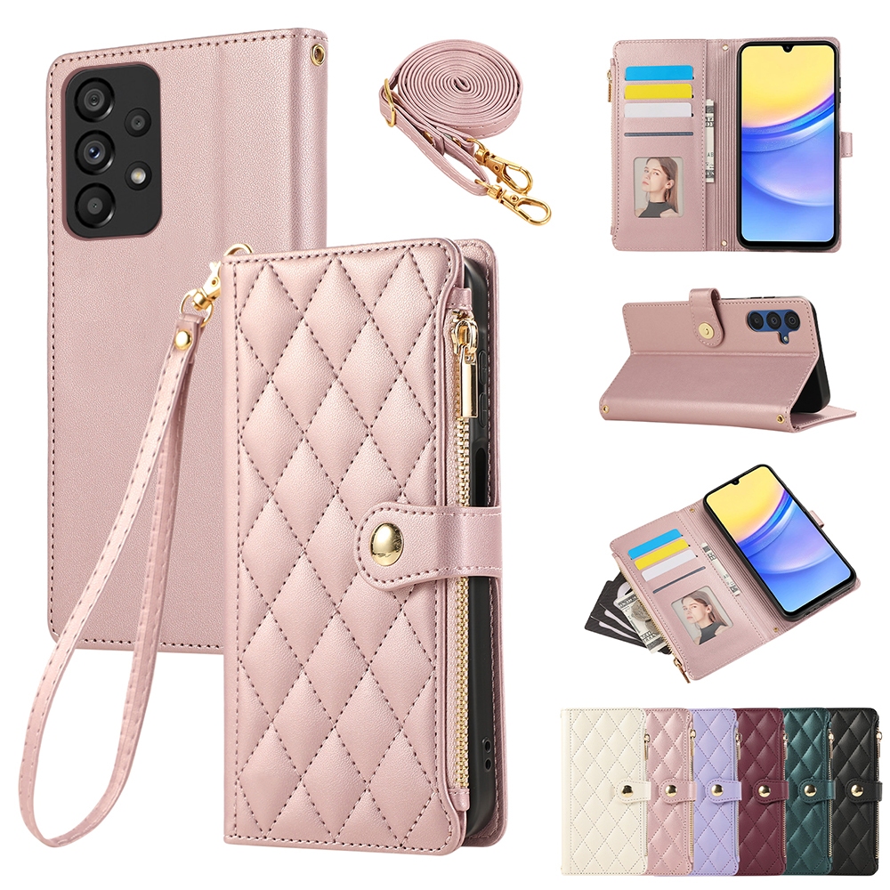 Case Samsung A73 A53 A33 A32 A23 A13 A22 A71 A51 A12 A52 A52S Casing Ponsel Dengan Tali Penyandang Tali Bahu Modis Kisi