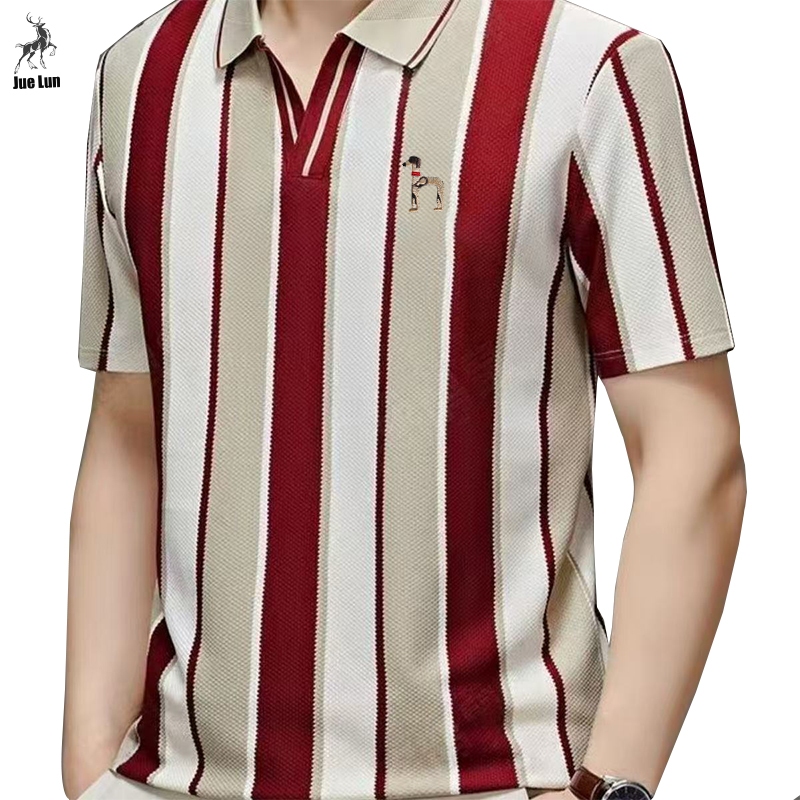 Jue Lun Baju Polo Pria Kaos Garis Garis Pria Baju Polo Pria Polo Shirt V Neck Kemeja Pria Lengan Pendek