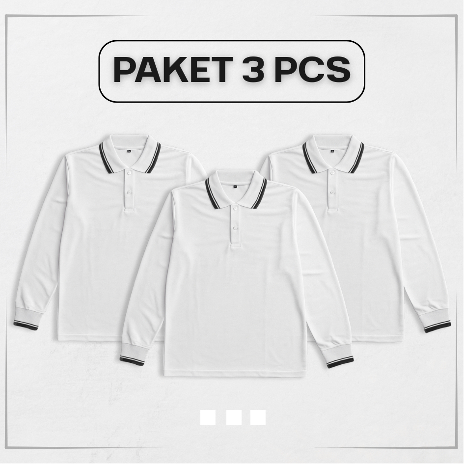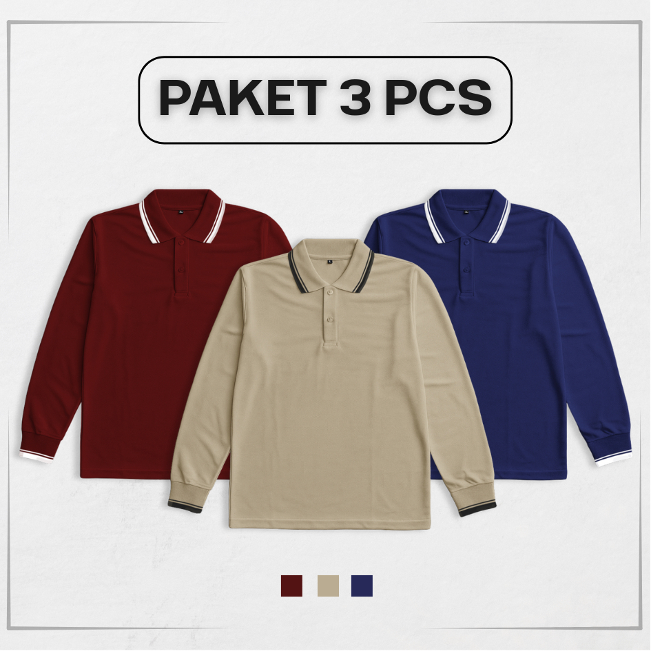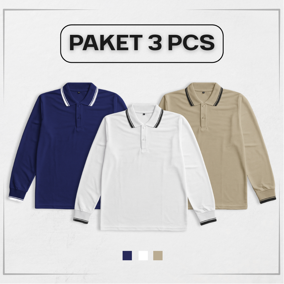 Paket 3 Pcs | Polo Shirt Polos / Kaos Berkerah Atasan Lengan Panjang / Kaos Kerah Wangki Seragaman