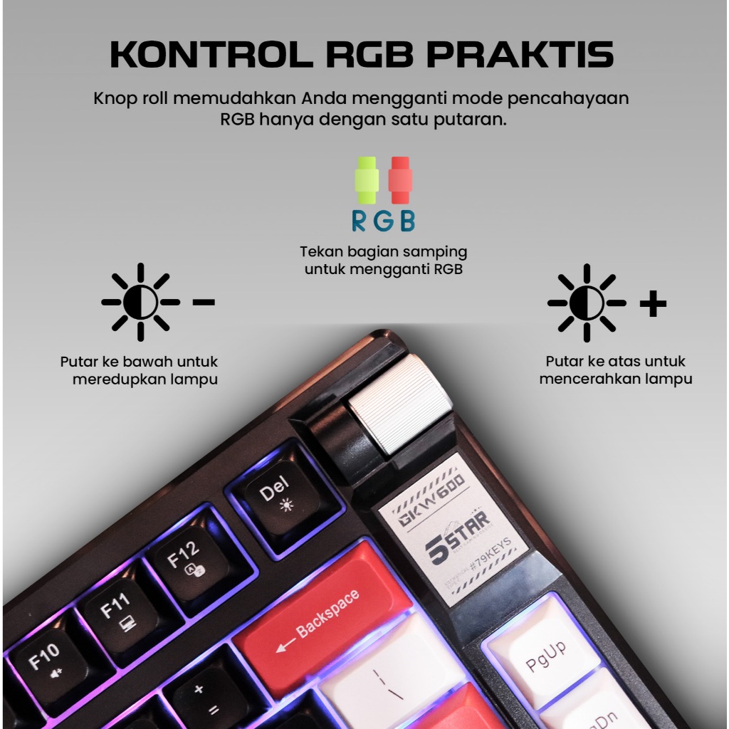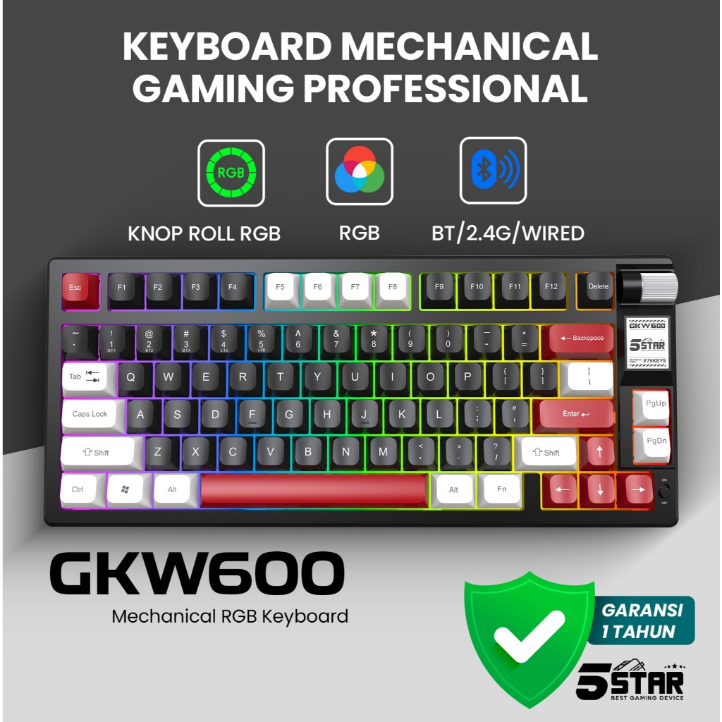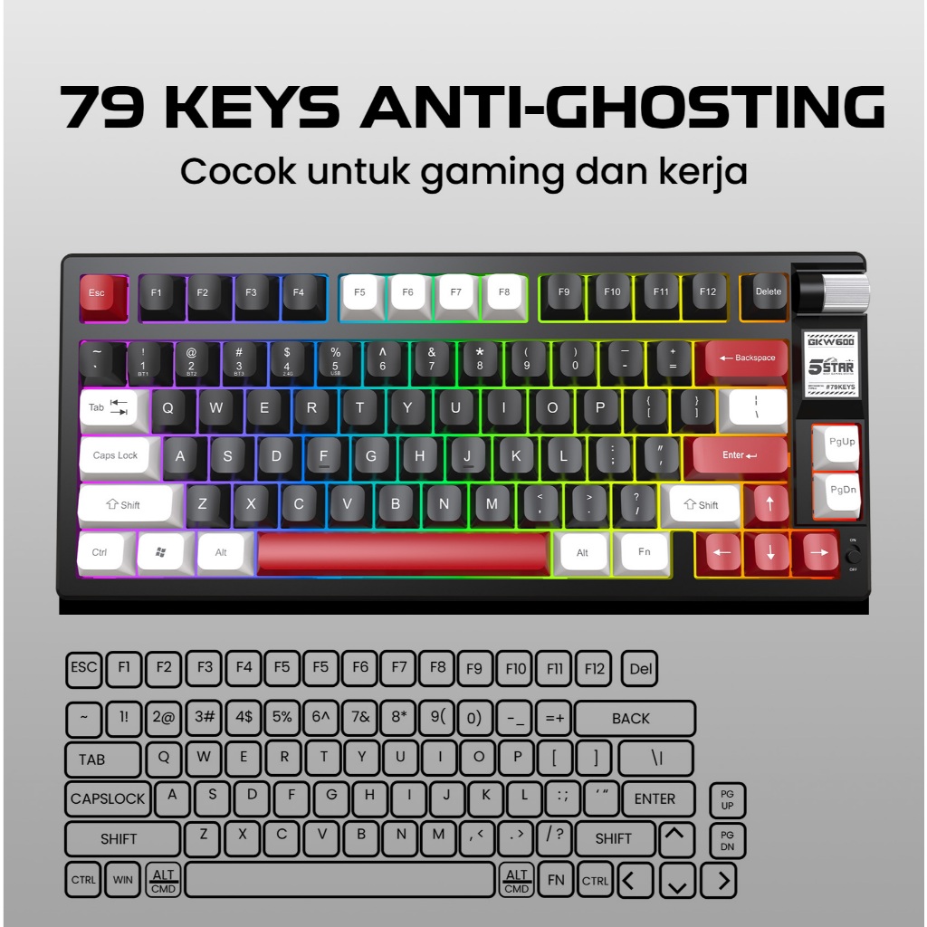 5STAR KEYBOARD GAMING MECHANICAL RED SWITCH 79 KEYS TRIPLE MODE BT + 2.4G + KABEL, RGB 4000MAH GKW600