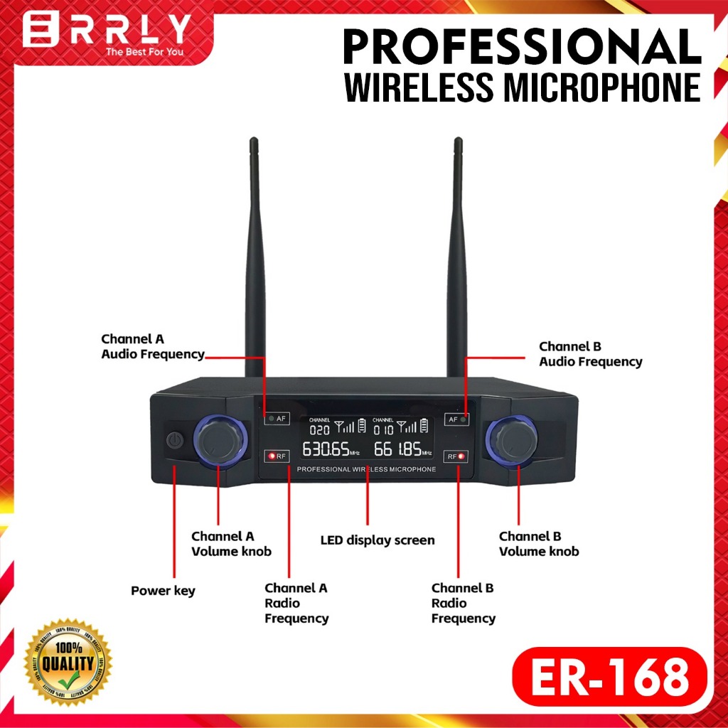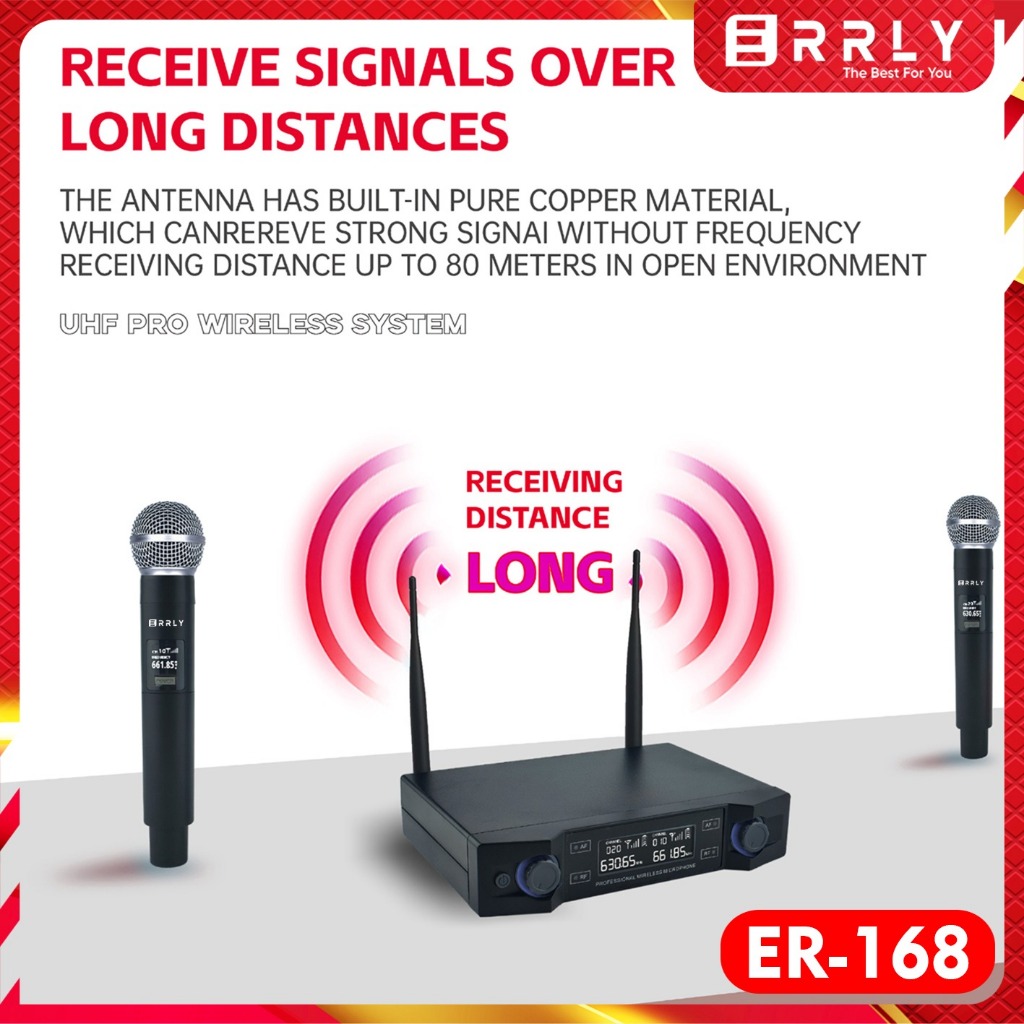 ERRLY Microphone Wireless ER-168 UHF Dual Mic + amplifier Receiver Digital LED Profesional Chargeable Mikrofon Nirkabel