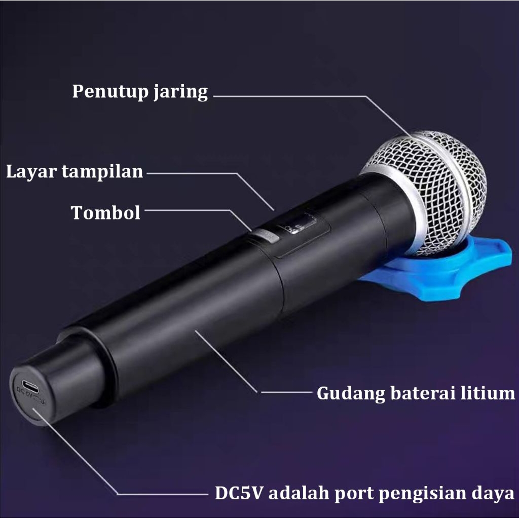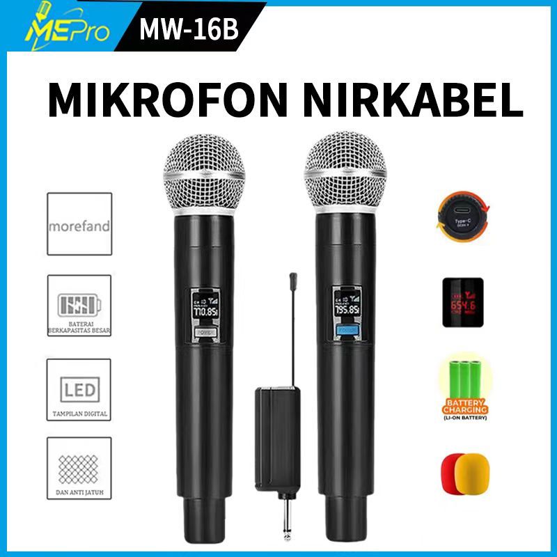Microphone Wireless Mepro MW-16B Mic Wireless Karaokf Mikrofon ganda berwarna hitam