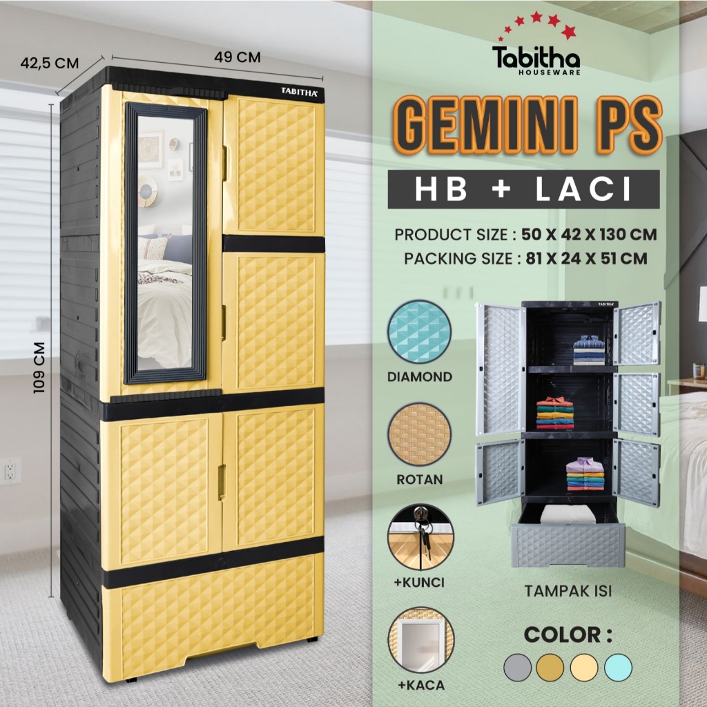 TABITHA Lemari Pakaian Plastik GANTUNG RAK KACA CERMIN MURAH ADA L LS2PL GEMINI MIRROR