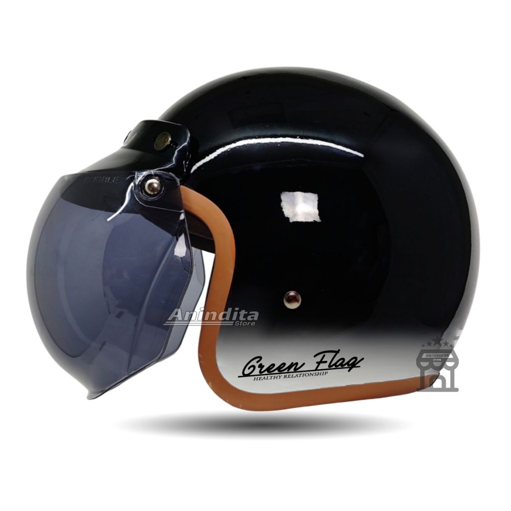 Helmi Bogo Classic Gradasi Retro Green Flag List Coklat