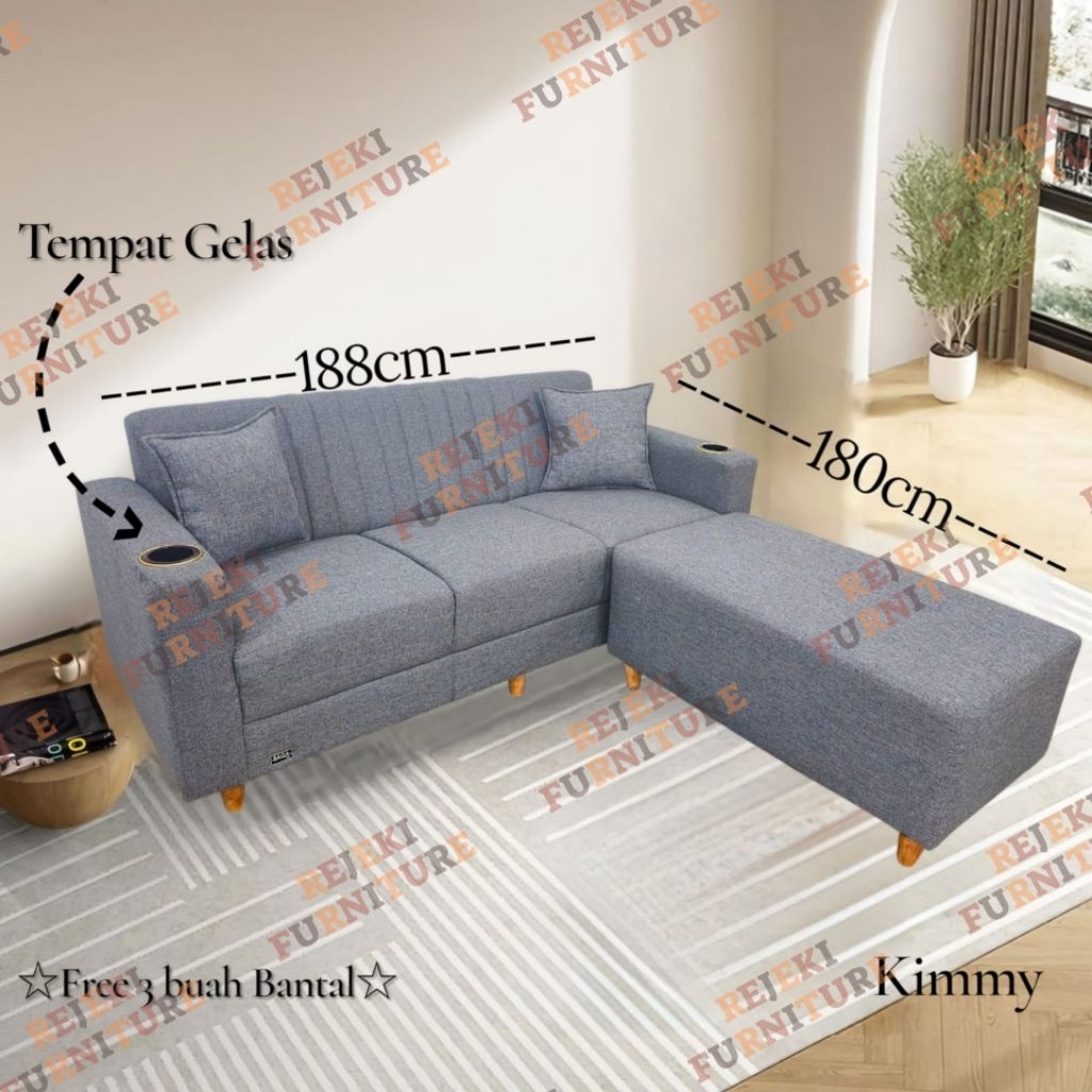 Sofa Sudut Minimalis Kimmy Saga Free 3Bh Bantal