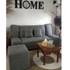 Sofa Bed Dark Grey. Bahan Canvas . Free Puff 1 Dan 2 Bantal