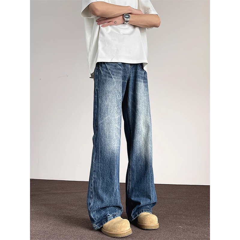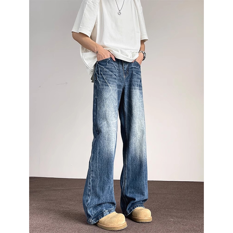 Jeans Pria Hitam- Desain Busanacelana Lebar Berpotongan Vintage Yang Dicuci