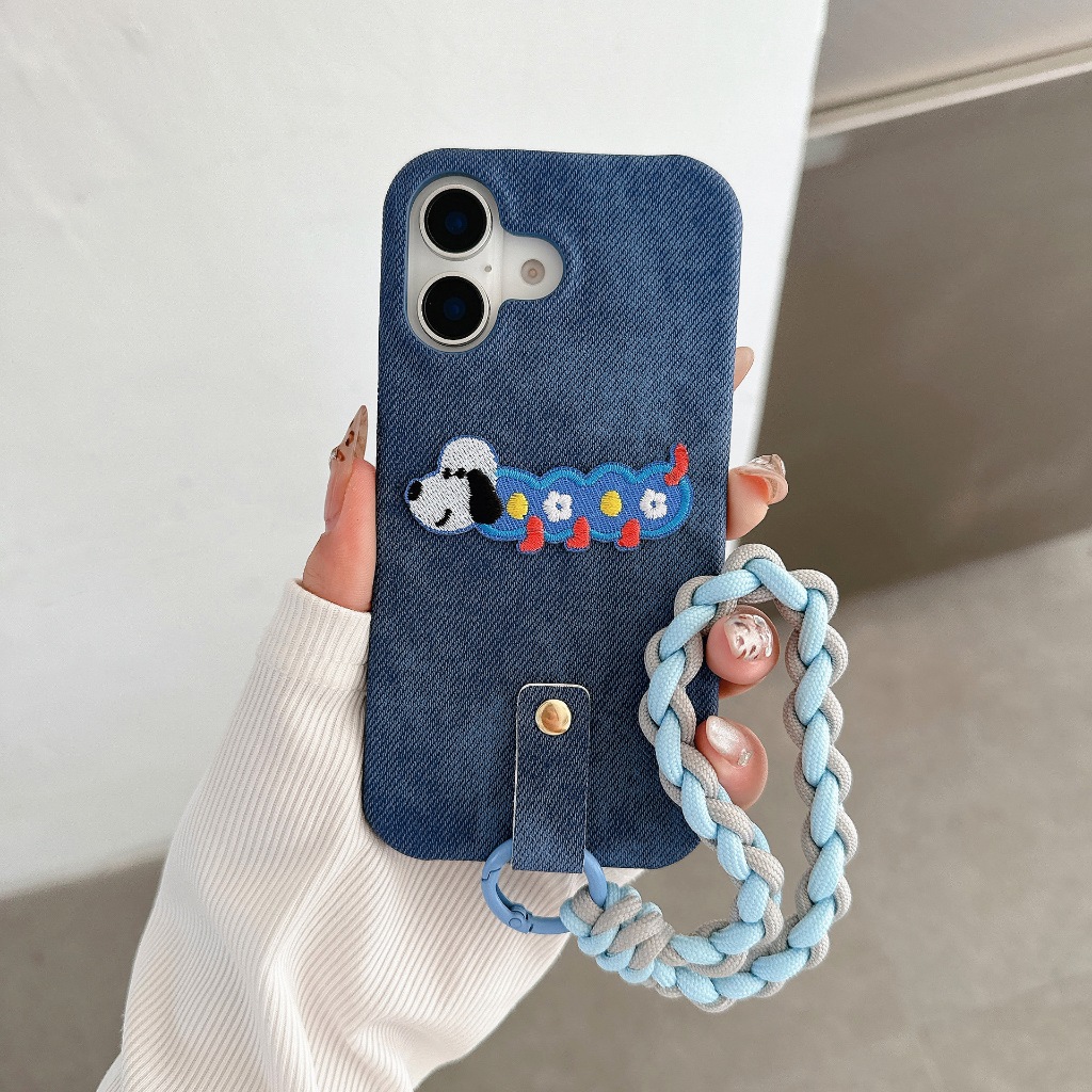 Case Iphone 17-13 Promax Pro Denim With Card Slot Puppy Emboiderey Iphone Case