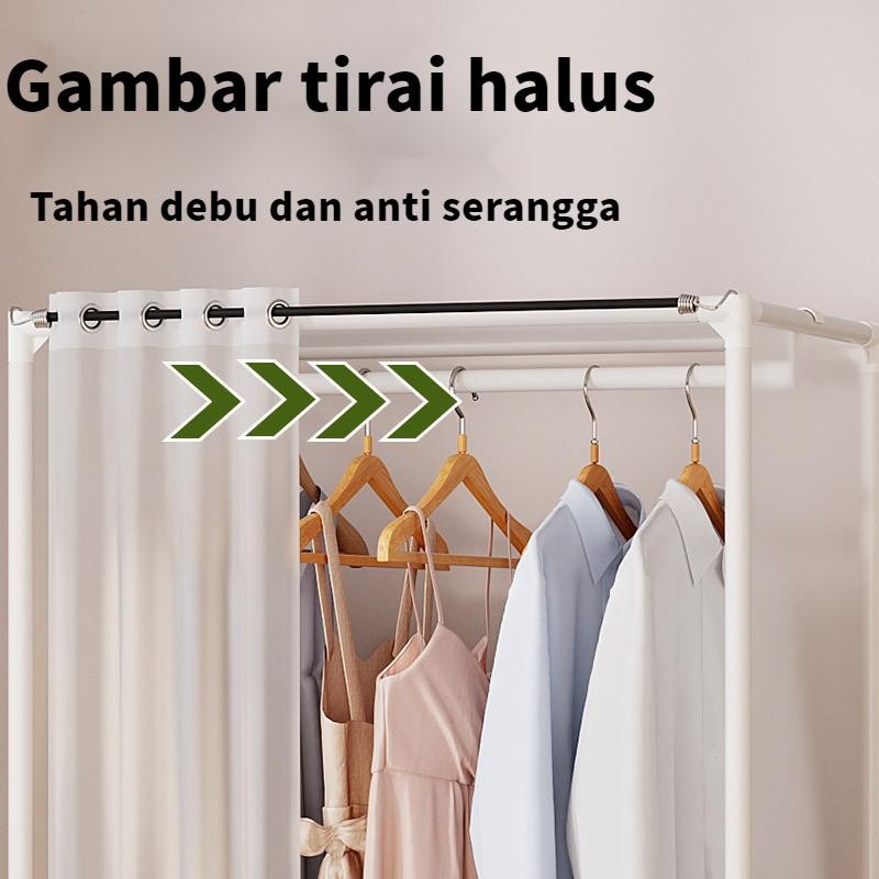 Lemari pakaian sederhana dengan tirai geser, anti serangga dan tahan debu, lemari penyimpanan pakaian berkapasitas besar, mudah dirakit, kokoh dan kuat Furniture