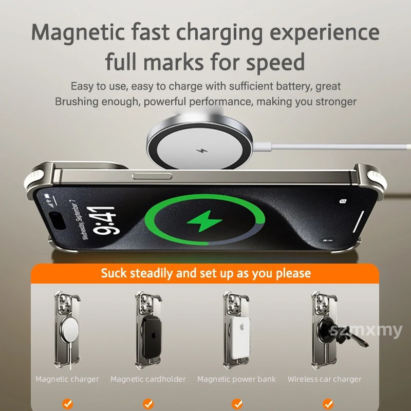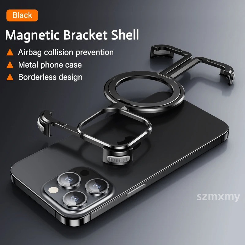 Luxury Metal Rimless Magsafe Magnetic Stand Phone Case For Iphone 14 12 13 15 Pro Max 14 15 Plus Aluminum Alloy Shockpro