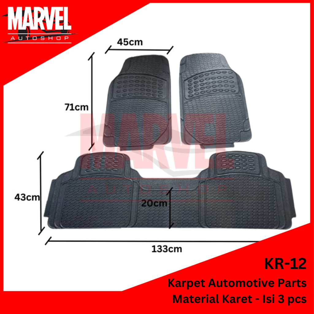 Karpet Mobil 3Pcs Universal Karet Hitam Kuat