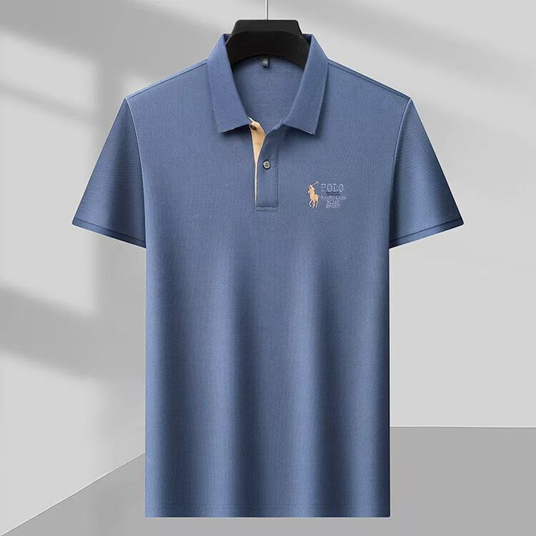 Keyboy Polo Shirt Pria Korean Style Striped Short Sleeve Polo Shirt Dewasa Biru Lapel Collar Casual Tops Plain Tshirt Fa