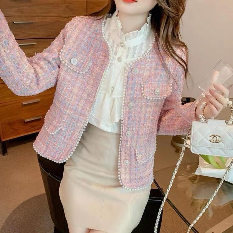 The0ne_ Feminine Sweety Blazer Tweed Soft Pink Rainbow M-2XL