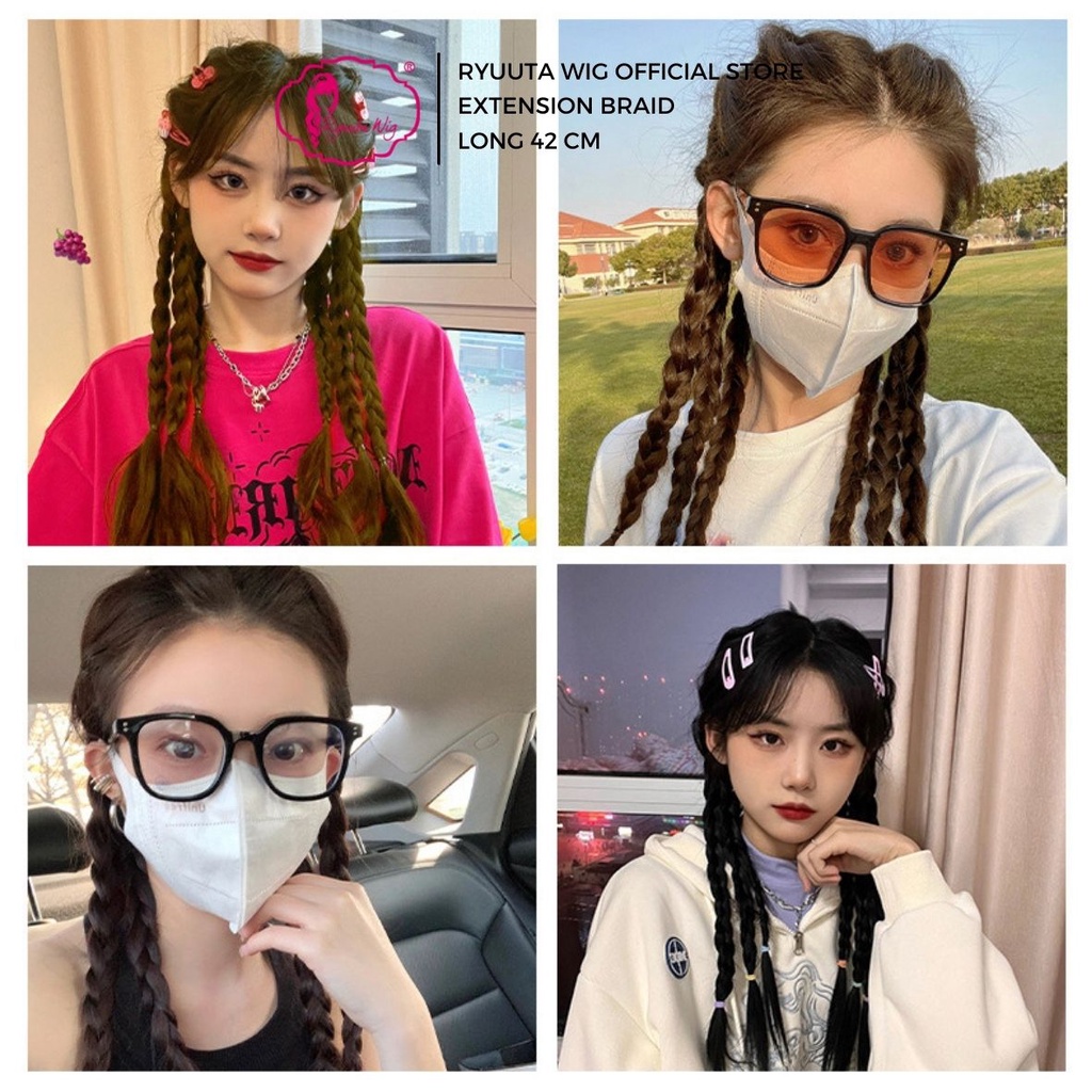 Ryuuta Wig Extension Kepang Ikat Braid Panjang Hitam Coklat Highlight Warna