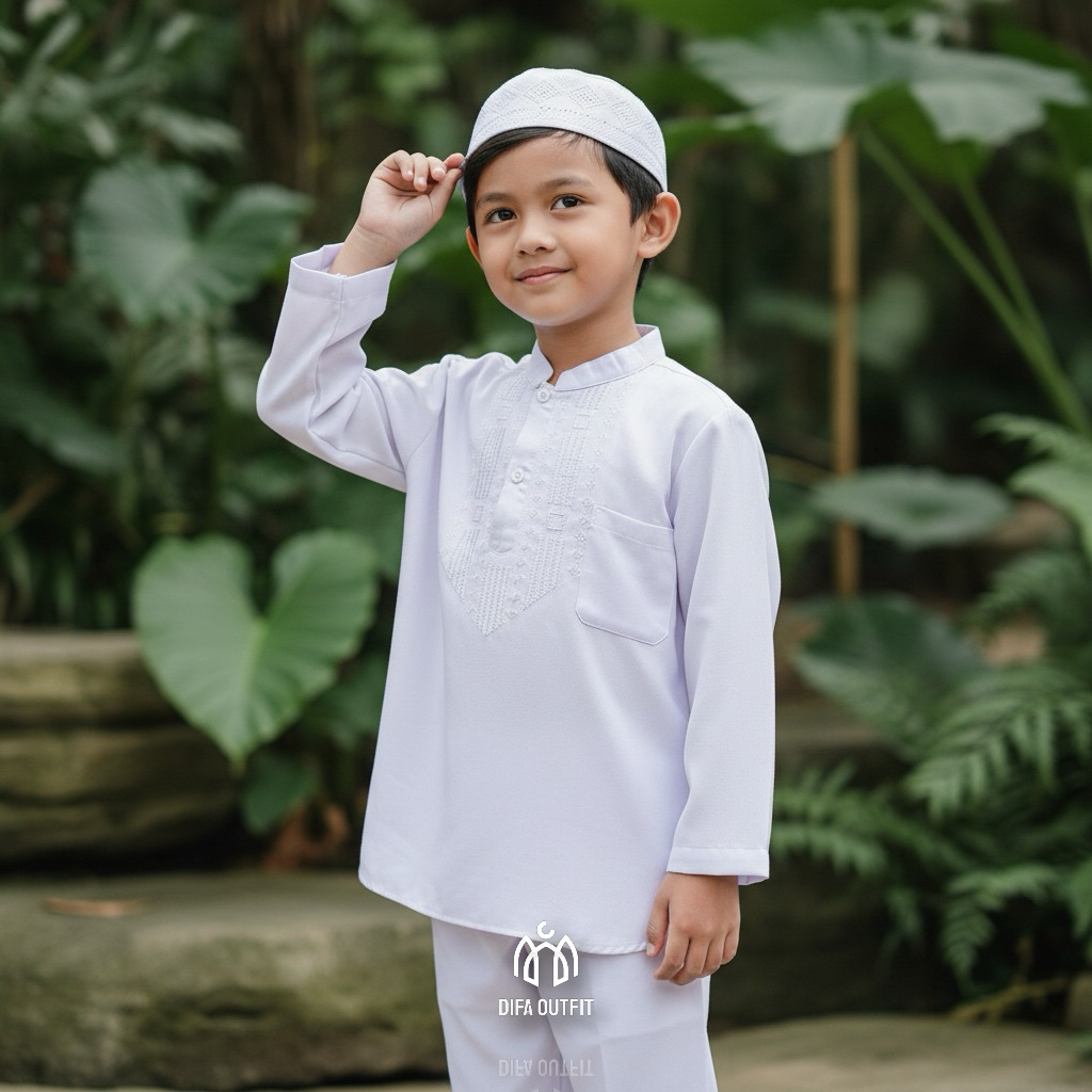 stelan baju koko putih anak laki laki dengan bordir