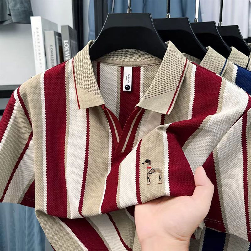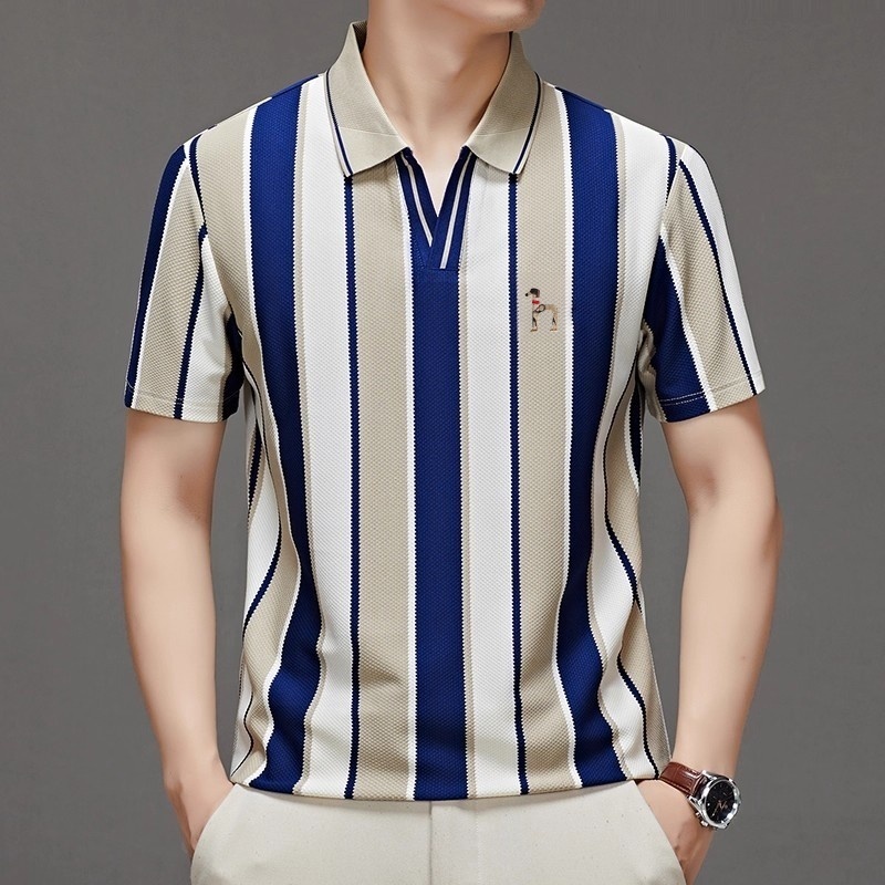 Stripe Polo Shirt Pria Kemeja Polo Bordir Kaos Kerah Pria Lengan Pendek Kaos Casual Pria Kapas Baju Kaos Pria