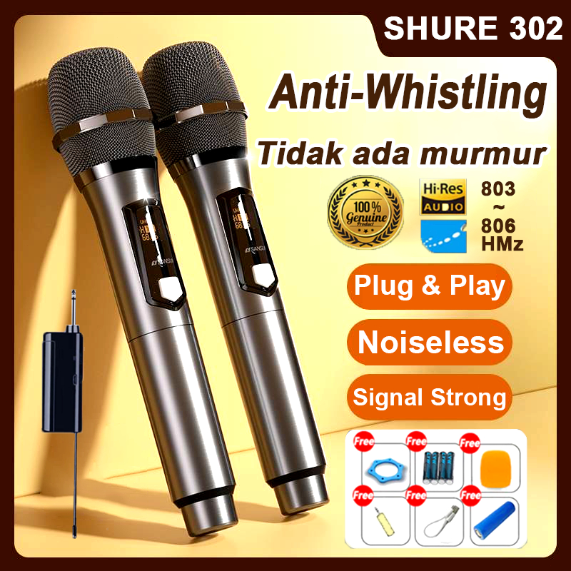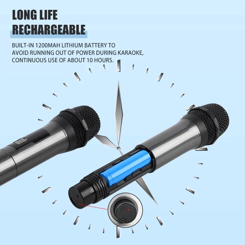 Microphone Wireless Microphone mic wireless Abu-abu 2 Mic PG-B39 UHF Wireless Mikrofon Bluetooth Microphone Karaoke Tanp