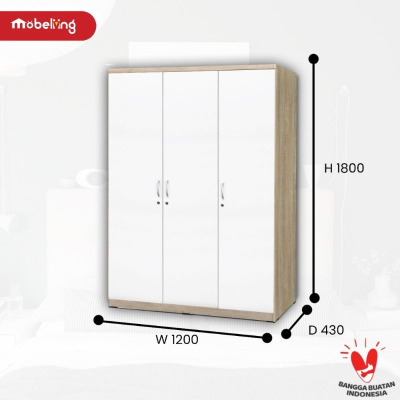 Mobeliving - Lemari Murah 3 Pintu Putih Body Grey LPB 261117