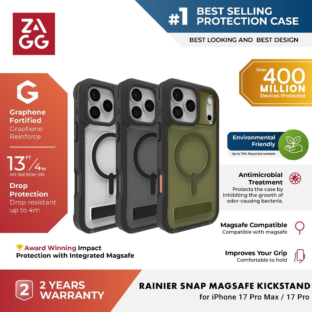 Zagg Rainier Snap Magsafe Kickstand Case Iphone 17 Pro Max / 17 Pro - Magsafe Casing With Camera Button Control