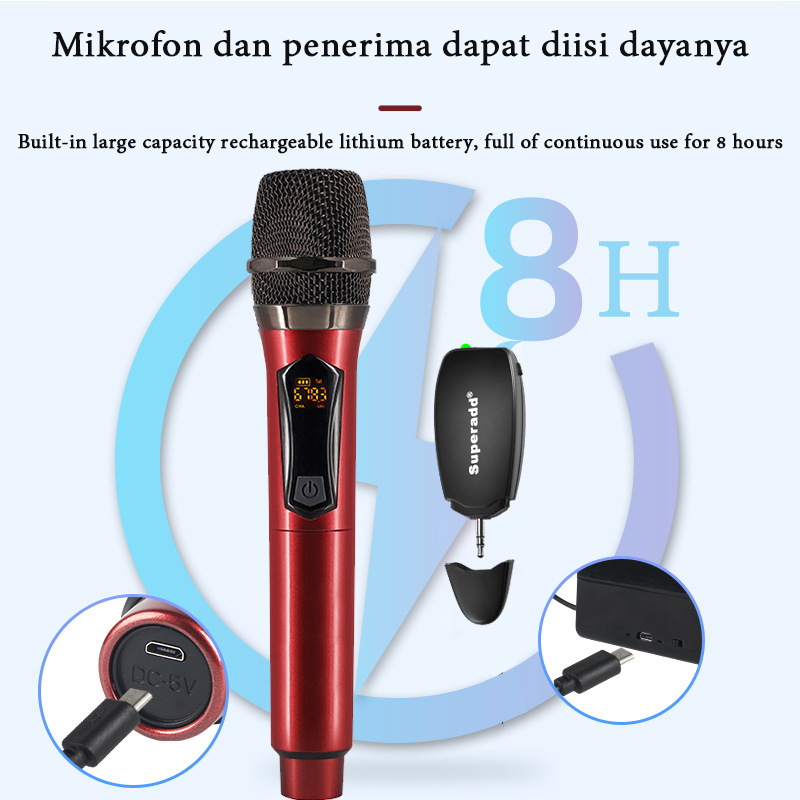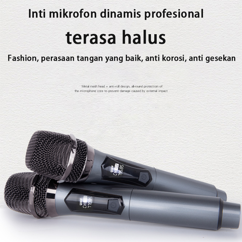 Double Mic Profesional Wireless Microphone Mikrofon genggam nirkabel, cocok untuk karaoke, siaran langsung luar ran