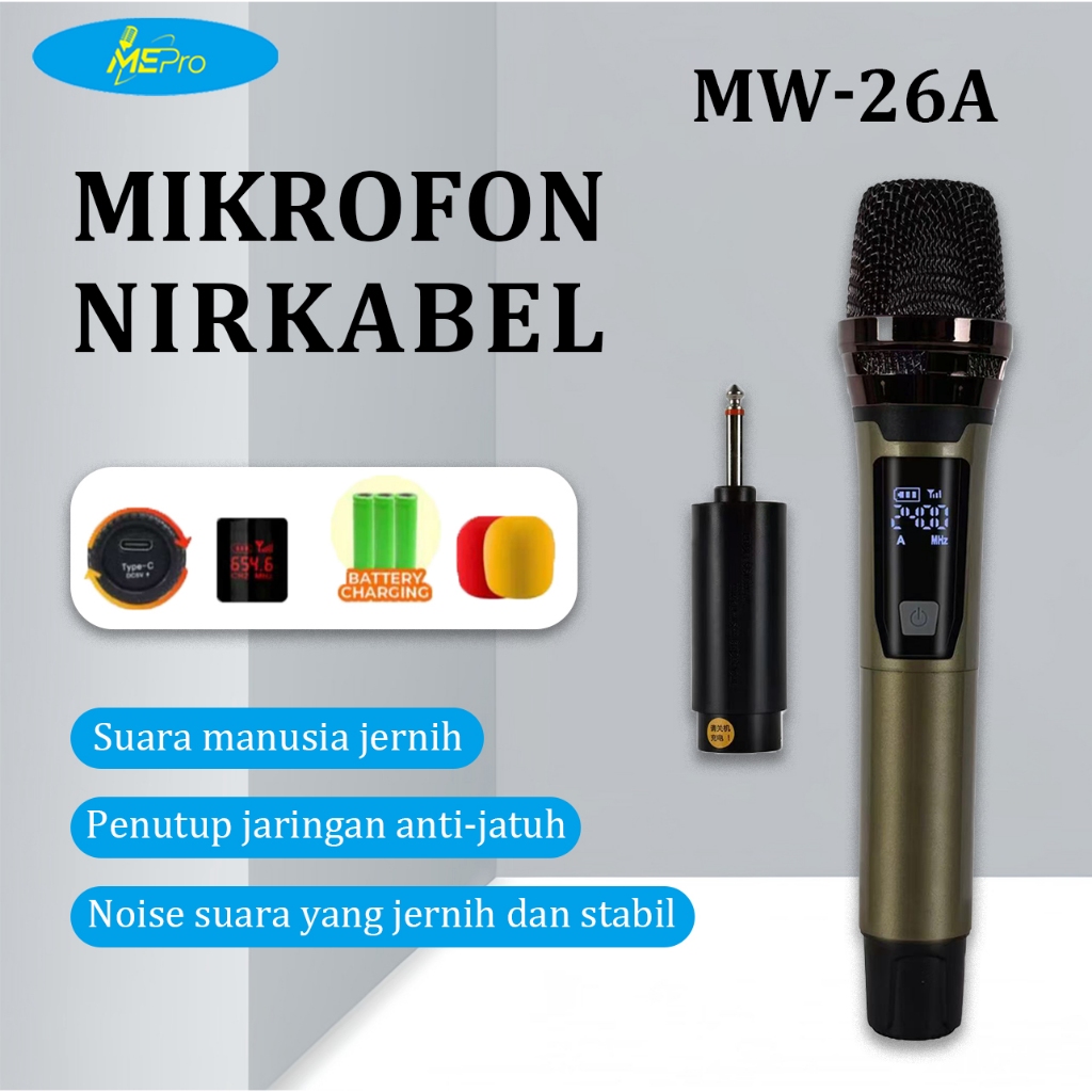 MIC MICROPHONE WIRELESS DOUBLE MEPRO MW-26A/26B NEW kuning mengkilapEN EDITION MIKROFON KARAOKE