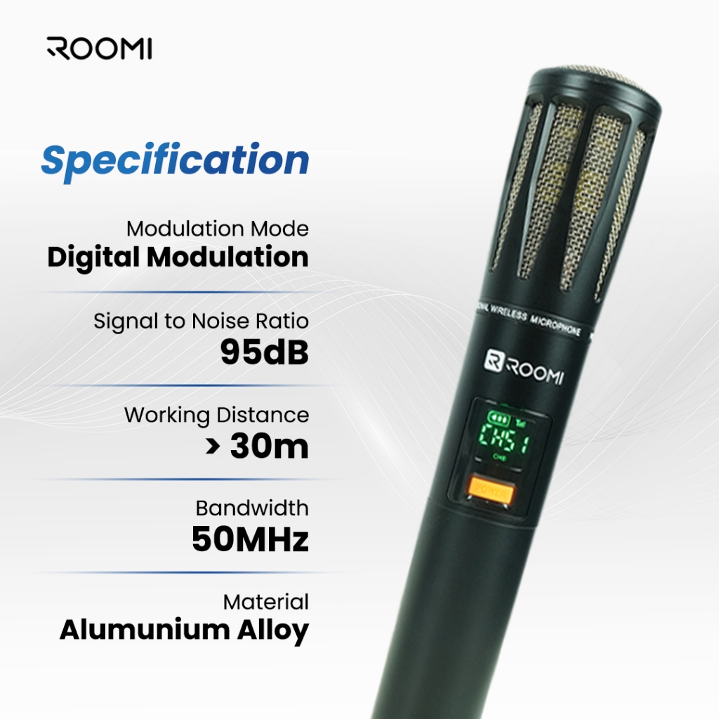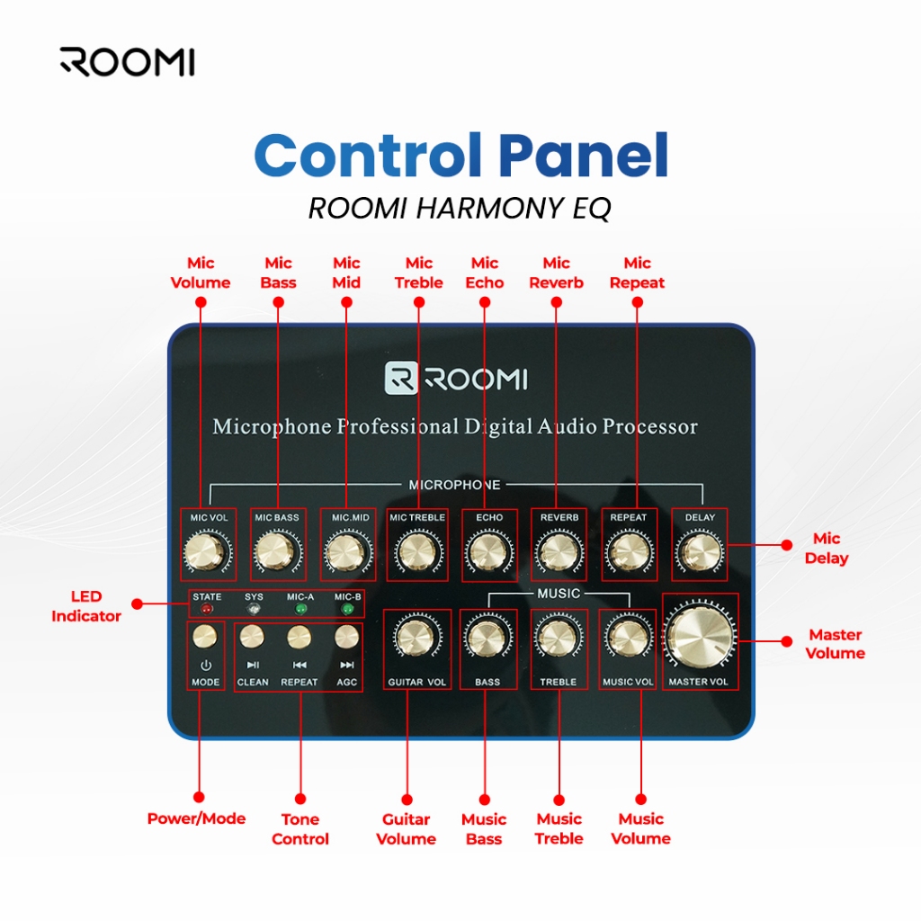 Roomi Harmony EQ Mic Wireless Karaoke Meeting Profesional Digital Audio Processor Bahan Metal Premium Rechargeable