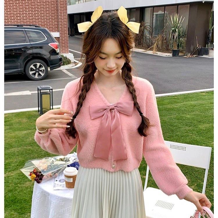 er Premium Rajut Salju Halus 860 Cardigan Pita Cute Atasan Wanita Sweater