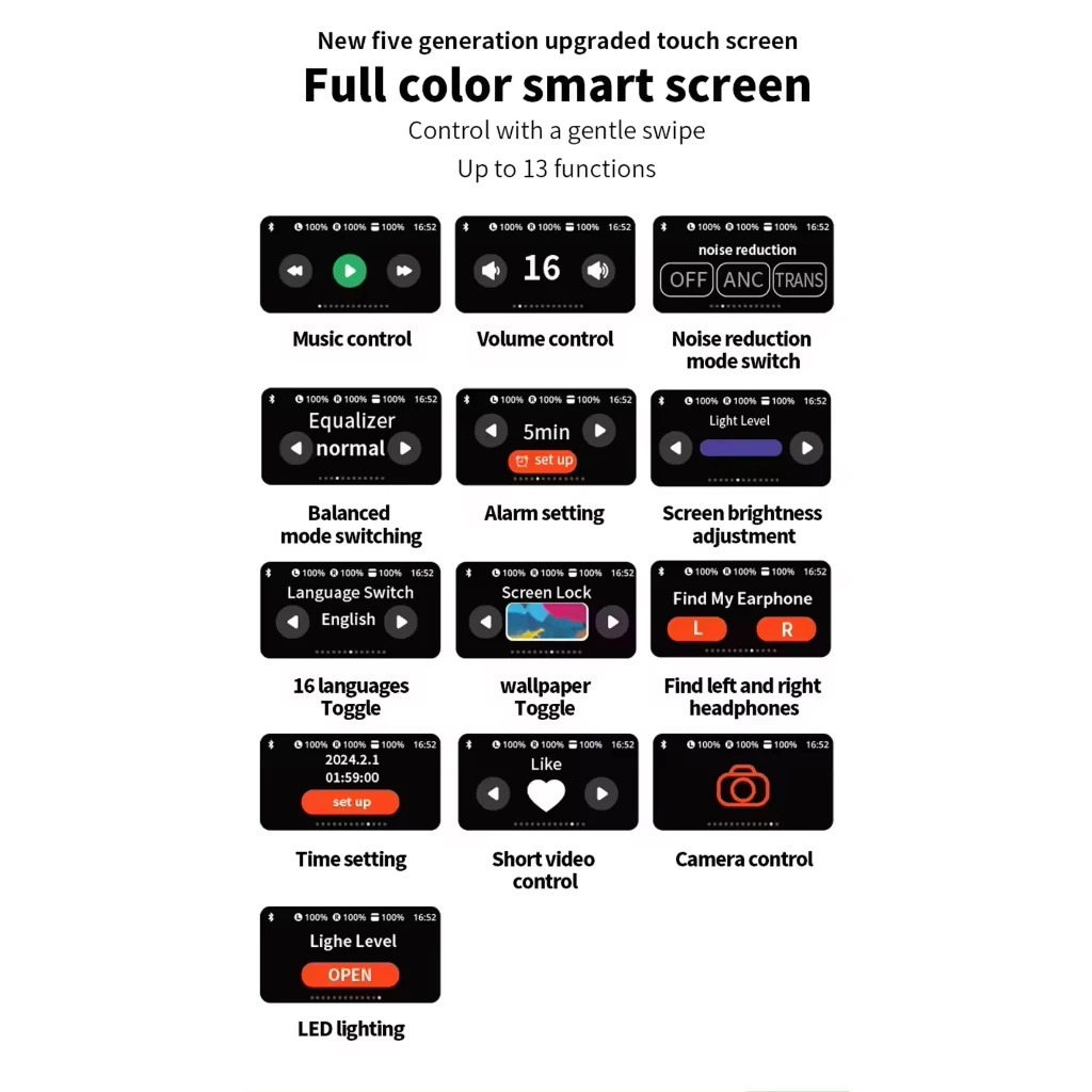 A9 PRO ANC/ENC TWS Earphone Headset Bluetooth V5.4 Smart Screen Active Noise Reduction