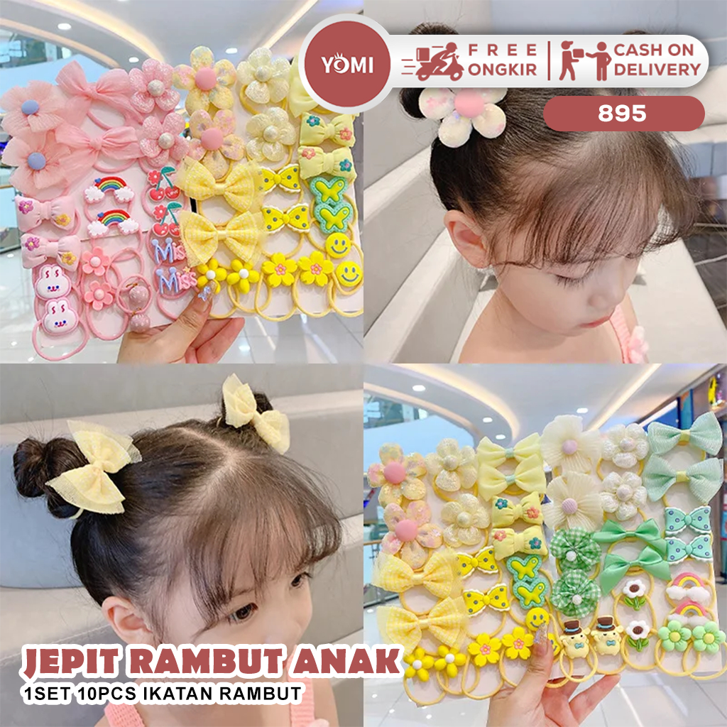 YOMI-1SET 10PCS IKATAN RAMBUT DAN JEPIT RAMBUT ANAK 895