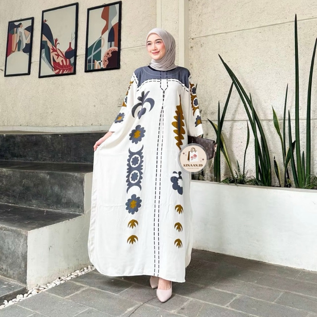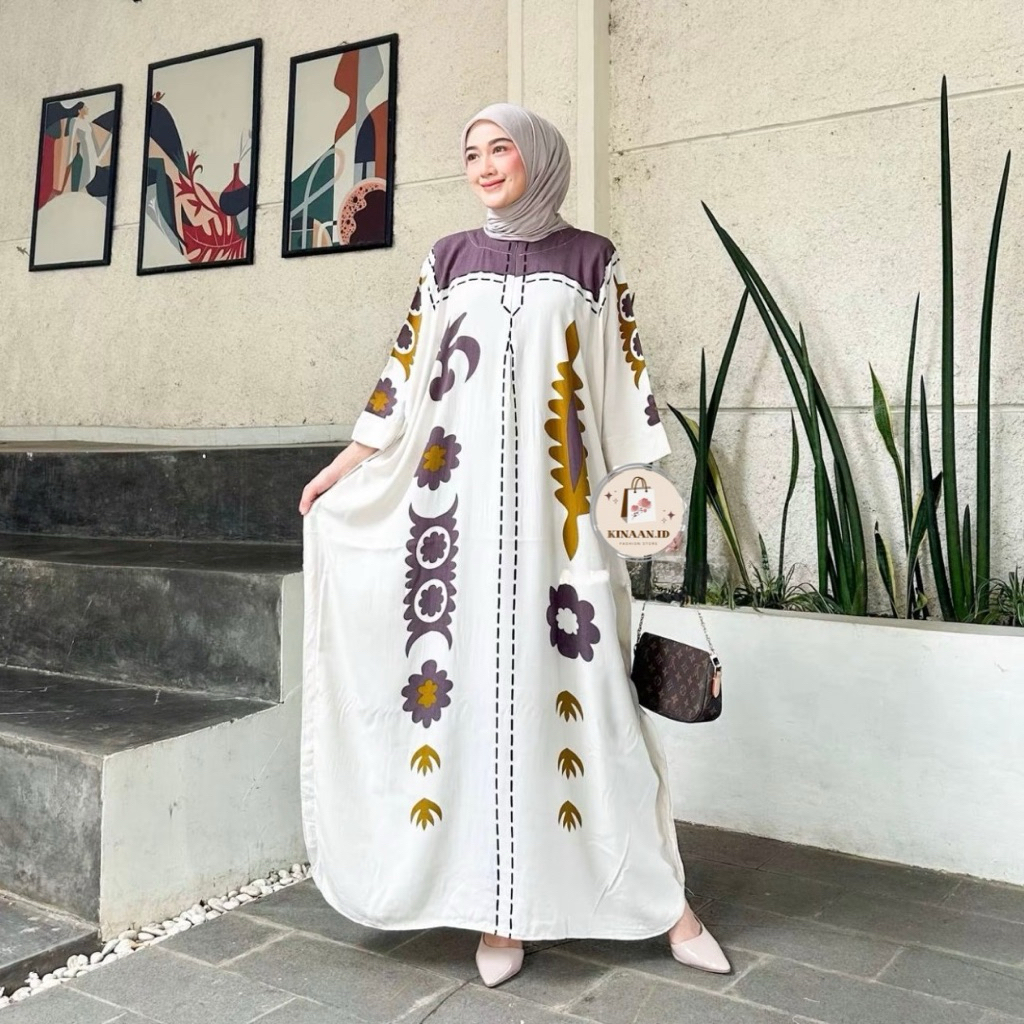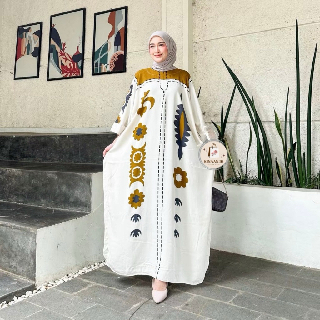 Gamis Kaftan Motif MONALISA Ld 180 cm Abaya Kaftan Panjang Muslim Wanita Nyaman Ori - kinaan.id