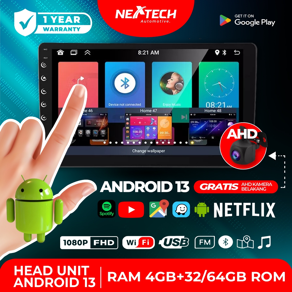 NEXTECH Head Unit Android Mobil 4+32/64G 7/9/10inch + Cooling System Car Android 13 Audio Mobil GPS BT Music WIFI Naviga